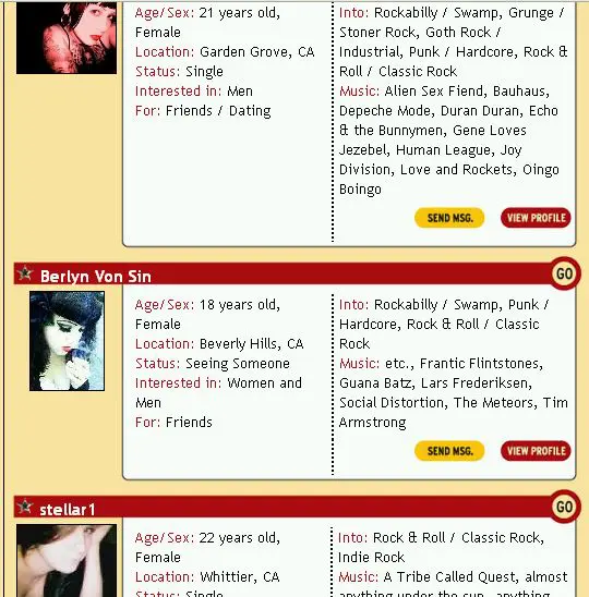 Finally my prayers have been answered … No longer do us lost lovers of rock music have to succumb to the goobers on Match.com or E Harmony. Now there’s www.rocknrolldating.com ! Wow. It’s like a dream come true. Now I can find all the emos, screamos and tryhards I want. I guess you pick and choose your litter by their musical tastes, which I kinda go by already. You won’t see me rolling with no Kottonmouth Kings or Good Charlotte fans. Naw, but for online dating it’s a pretty catchy concept since lovin’ music is so damn popular and accessable now a days. So if I was ever having trouble meeting men, I’d guess I’d cougar some young blood on this site or resort to some old fart on www.millionairematch.com. Yeah right.