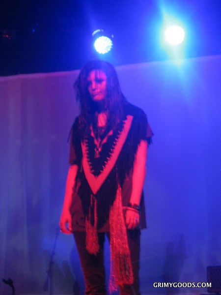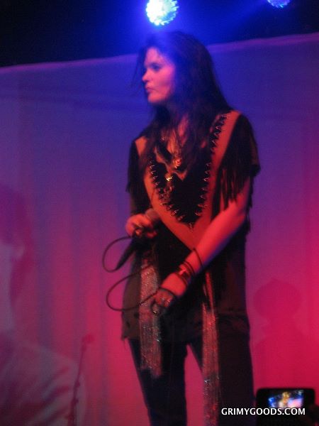So the soulful, rockin’ duo begins. Wow. Although, their audio does them justice, their live performance is insanely fuckin’ marvelous! Immediately I tell Tony that front woman, Allison Mosshart, reminds me of a young Patty Smith. With her tall slender body, disheveled head of raven hair, and possessed like singing and shaking. After noticing The Velvets and The Heartbreakers on the film projector behind them, who comes up next on the big screen? Why none other than, punk n’ blues queen, Patti Smith. I guess Mosshart too is a fan.