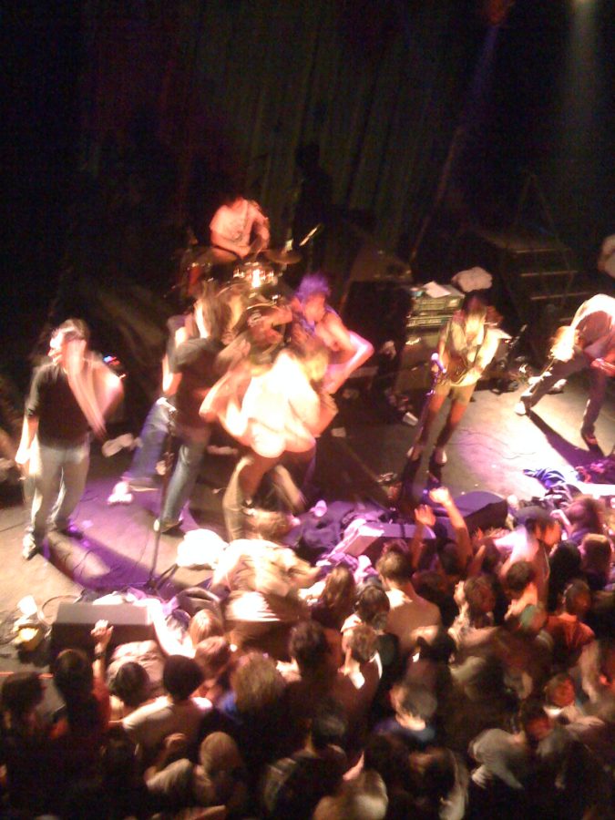 But I digress; the show was all killer, no filler. Complete nutter butters actually. A matter of fact my ears are still ringing now 20 hours later, awesome. A show highlight I must share: as soon as they started playing the last song, everybody bum-rushed the stage. I’m talking like more than 50 people up there banging their heads, fucking with the band, throwing shit, straight up wildin’ out. Cole himself stage-dived and just ran the fuck out. Then he pops up on the other side of the room a minute or two later like he was reenacting a David Blaine skit. So really what’s not to love in that scenario? Now I wish I could sing the same praise for the two opening bands, Gentleman Jesse & His Men and Lets Wrestle, but there was no way I could pass up $3 Miller Low Lifes at The Levee right around the corner from the Music Hall of Williamsburg. Sorry my alcoholism (my drunk cheap ass doesn’t like paying $6+ for a Tecate) prevailed. All I can say is that I hope every member of the Lips can survive another tour because I’ll be one of the first to cop tickets.