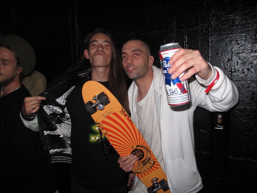 Following the vid, Osiris sponsored an eventful afterparty upstairs in the Spider Club. Free drinks, bands, DJ’s, and fun, friendly people all around. Although there were some hot ladies in the house, and of course your token porn stars (Alektra Blue and Mikayla Mendez presented awards), the ratio (like all skate events) was dominated by males; I’d guess about 70/30. Good for the girls, bad for the boys (I wasn’t complaining). Always great to run into all my North County/SD boys, love em! I was also stoked to run into my buddy Mario, the amazing drummer for the kick ass loudest psychedelic rock band in San Diego, Earthless! Apparently he can also lay down some pretty sweet soul rockin’ garage tracks as a DJ! Word.