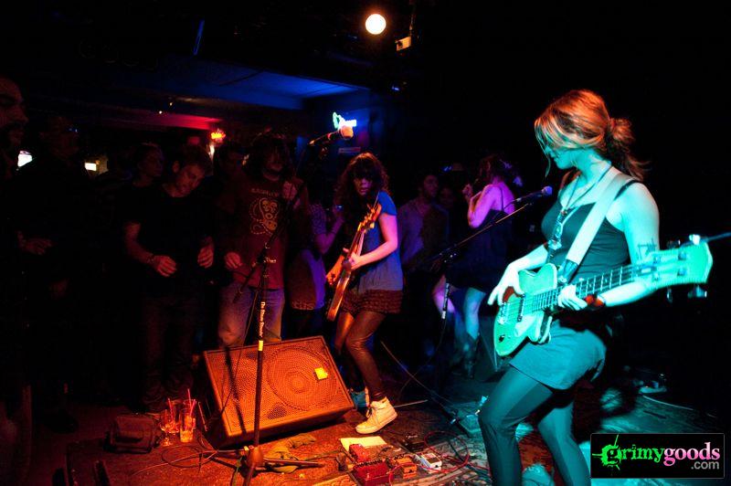 I’ve said it before, and I’ll say it again, I absofuckinlutely love Those Darlins! If you have yet to listen to their thrashin’ country-punk-garage-rock, your really need to cruise on over to their site and give them a listen. But even better yet, their live performance is spot-on full of crazy hot dancing, wailing guitars and grimy crowd interaction. These girls will get so in-your-face, whether it’s with their body, guitars, food or beer, they’ll be right up in you mug to the point of blissful awkwardness. And to top it all off, they’re really fuckin’ hot!