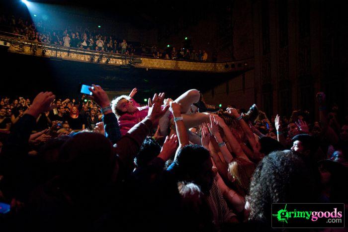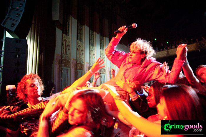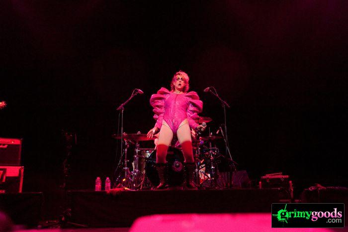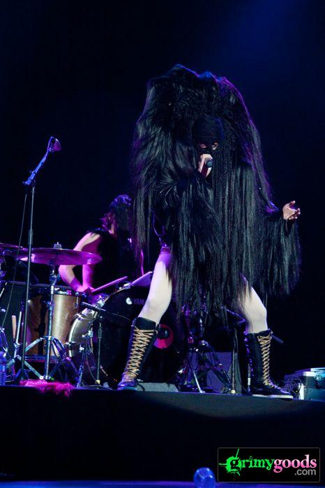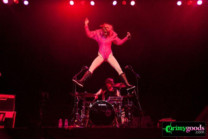 The place was packed to the walls from the floor to the balcony. It wasn’t your typical trannies, fag hags and sexed up kids at this LA show, Peaches brought out the hot straight ladies too. Why? Cause Peaches fuckin’ rocks and we all want to learn the “teaches of Peaches.” Additionally, where else can a good girl let her inhibitions out with hundreds of other chicks and chant “Fuck the Pain Away.”