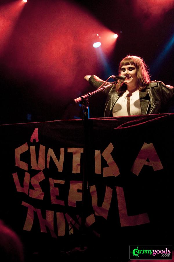 With Nash shouting out to the crowd, “the next song is about homophobic pricks!” she then knocks over her vodka/coke and hollers out for a new one (which gets passed down all the way from the bar to the stage) and begins to engage the crowd with “I’ve Got a Secret.” But the real shocker came when she performed “Mansion Song.” Holy fuck! Nash must have had a bad case of tourettes when writing this song. Here’s a preview of the word candy she spit out at us: “Get fucked and rolled over,” “STD,” and “Get fucked and dragged!” All this to the tune of some spooky Halloween-like instrumentals.