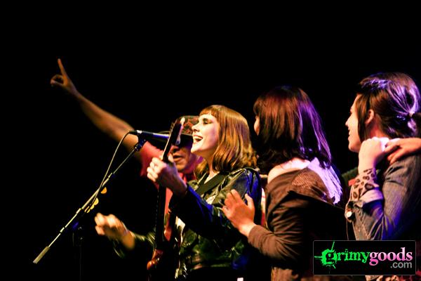 All together, Kate Nash put on a pretty bangin’ show. I wasn’t too keen on her lame opening band, Supercute though. Sure these lil metallic-space-looking-romper-wearing gals are all but 13 and doing their thang on stage touring with Kate Nash. But it was just total stoops. They looked like a female futuristic version of the Wizard of OZ’s, Lollipop Kids. Sorry, yes, I can be a big meanie, but whatever. I’m sure Super Cute will look back 10 years from now and say, “What the fuck were we thinking?!” On the bright side, they did play a Pink Floyd cover of “Pigs” off their album “Animals.” And they did perform “Foudations” with Nash as her goofy back-up dancers. Check out the video below for yourself and be sure to check the rest of the amazing photos!