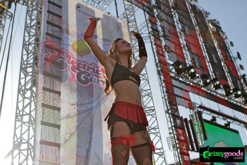Day 2 of the Electric Daisy Carnival. Again, just like the start of day one, the crowds are massive, the girls and boys are scantily clad, and I’m kicking around plastic bottles as I run around like a mad person because I need to catch me some Groove Armada before their set is over. Battling your way through a reported crowd of 100,000 was not gonna happen very quickly, and along the way I nearly clocked a frat boy type for running into me with nary an apology. But what I wanted to do the frat boy was handled for me as I watched one of the security guards shove him, hard, and take his shirt off to commence pumbling. The other security guards pulled him off before I could get my wish for jihad on frats, but my attention quickly turned back to the killer set on the stage by Groove Armada. Say what you will about their new album, they delivered one of the best sets of the weekend. They quickly broke into a mix of Prince’s “Controversy” before closing with “Superstylin’,” quite possibly the song I would pick if I were a superhero in need of a theme song.