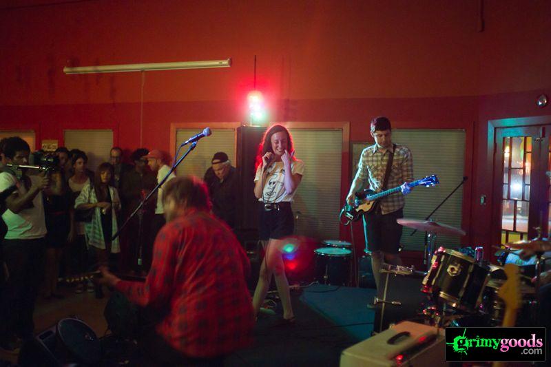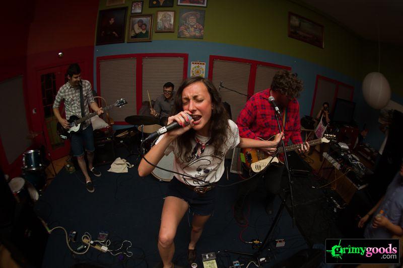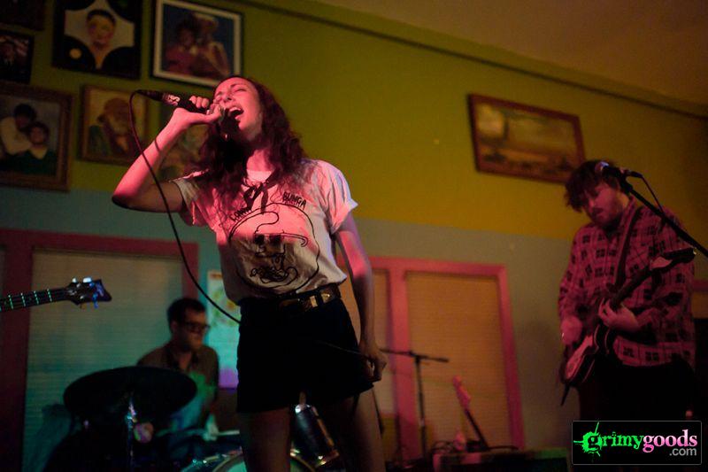 Those behind the venue joked on how the show’s $10 tickets sold out “faster than it takes a punk band to play a normal set,” so I imagined the place would be packed—though it didn’t really feel as such. Arriving after the punky herky-jerk of female-led openers Woah Hunx, the space hardly felt all that elbow-crammed and instead like the setting of all those perfect-house-party-teen-movie-scenes where the kitchen counter functions as a crowded bar and conversing drinkers line the stairway and every wall.