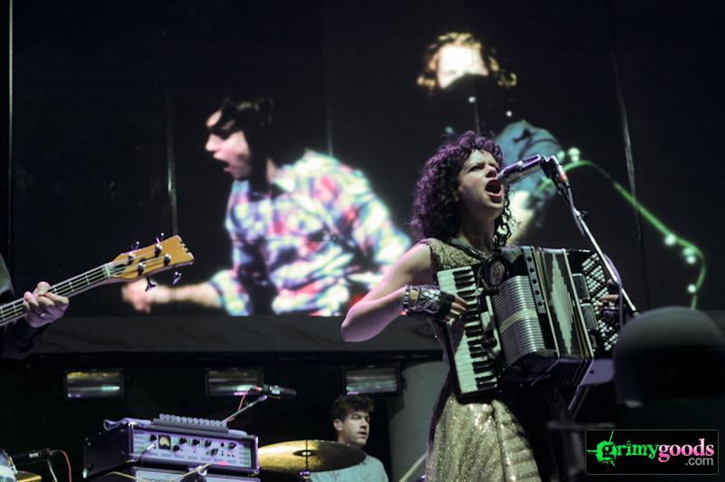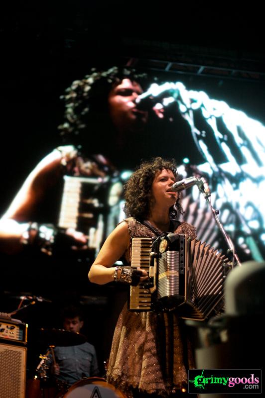 Even with Butler’s guitar troubles, Arcade Fire dazzled the crowd through bringing to life songs such as “Modern Man,” “Rococo” and “We Used to Wait.” But the oldies such as “Haiti” and “Crown of Love” sparked some warm nostalgia of when those songs were in their prime: they were the soundtrack of our lives in ’04-’05. The lovely and petite Chassagne cast an aural spell on us with her enchanting vocals once “Haiti” came into play. As she began to soflty dance across the stage the entire band proceeded to move along with her in a hedonistic island fashion. But what really did it for me was “Crown of Love.” If found myself fixated on Butler as he sang this love-letter of forgiveness. Although sad, that song is my favorite of Arcade Fire’s impressive roster. Fueled with so much love and emotion, it really grabs your heart and does quite the number on it (even more so live).