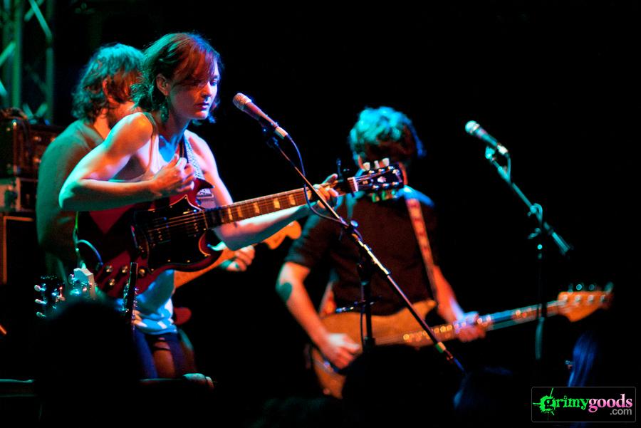 Aside from taking some extra 10-15 minutes to get her sound check right, singer/guitarist Elizabeth Powell was already annoying me with her long delay. In fact some of her band members looked quite annoyed and wanted to get on with the show. For taking that long I expected to hear some pristine vocals and smooth guitars; but that surely wasn’t the case. The sound was not right leaving her vocals at times sounding way off from the instruments. I thought this was a bit weird because The Besnard Lakes who had played a beautiful set before them on the same stage sounded great. What irked me even more was how Powell was acting towards her “fans” in the front lines. A few of them were taking photos with their point-and-shoots and she was getting quite bitchy about the photos and flash. She even scowled at them as though she were some mega pop star too good for any paparazzi.  Regardless, I still stuck around for most of their songs hoping the style of their music would win me over. I along with many others found Land of Talk to be a bit bland and well, your basic chick pop-rock.