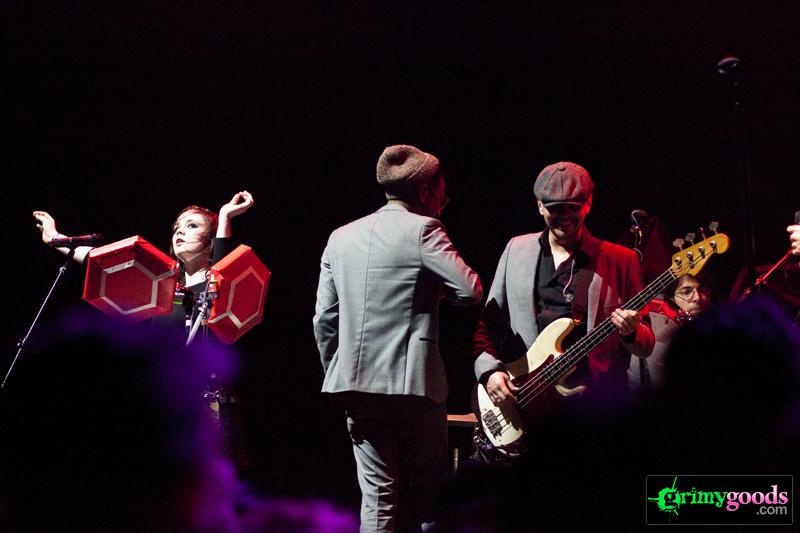 Another outstanding supporting act from Miike Snow’s amazing show last Thursday, October 14th at Club Nokia was Mark Ronson & The Business Intl. Kicking out the dance floor jams alongside supporting act MNDR, Mark Ronson & The Business Intl.’s blend of hip-hop and electro pop really got the crowd moving. Guest rapper, Spank Rock, burst onto the stage for a couple of tracks that included, “Bang Bang Bang,” and “Ooh Wee.” The ensemble worked extremely well together considering the amount of talent and members in the line-up. Rose Elinor Dougall (The Pipettes), Alex Greenwald (Phantom Planet), and Amanda Warner (MNDR) to name a couple, played alongside a platinum blonde Mark Ronson. The atmosphere just felt like a huge, carefree party where everyone was out to have fun.