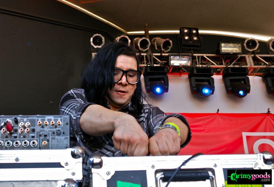 Up next, was L.A.’s soon-to-be-hottest beat maker, Skrillex. Even with his nerdy big-ass thick framed glasses, this kid is some dope shit. He blasts out some hard hitting beats with provocative samples that will blow your face off. Good stuff indeed. I would have liked to have heard him for more than the 15-minute intermission between sets. I guess I’ll just have to hit him up locally for some bass in my face.
