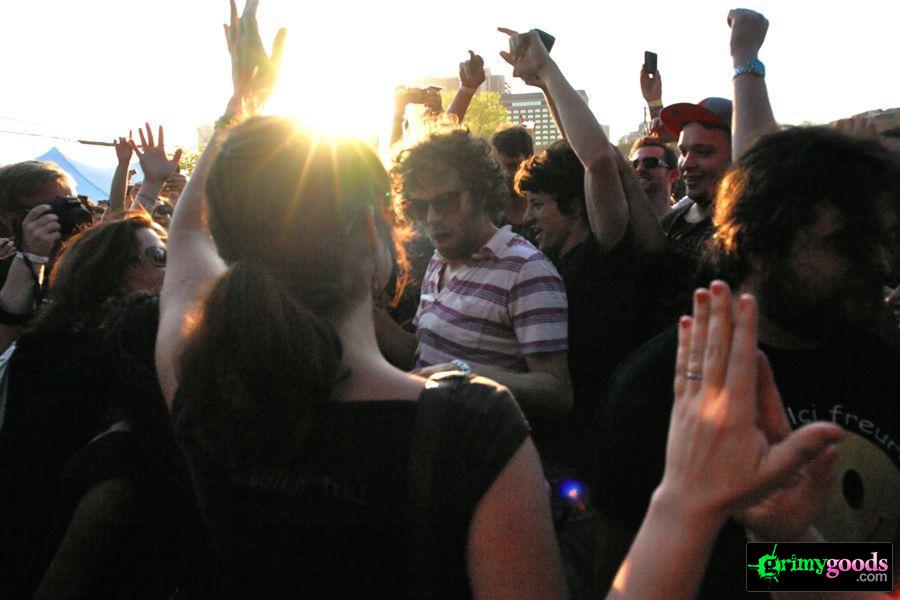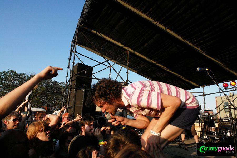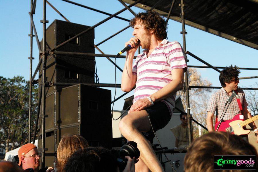 Ain’t no party like a CHK CHK CHK party, ’cause a CHK CHK CHK party don’t stop! Although a quote from one of Coolio’s songs (yeah, I know), it seems rather appropriate for CHK CHK CHK. If you’ve seen them live, you know they bust out one of the most exciting live acts full of crowd interaction and joyous madness. Indeed, a CHK CHK CHK party don’t stop! From fans to photogs and more, front man, Nic Offer, had the crowd in the palm of his hands. Firing up a dance frenzy as he pranced around in his token short-shorts and flamboyant poses, Offer went into the crowd not once, but twice. Little did he know that an obsessed gal below would chase him down like a Lioness hungry for prey! This chick tried her best to grab Offer and steel some smooches but Offer “doesn’t kiss on the first date” as he announced to the crowd once he got back on the stage.