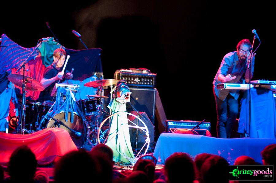 The evening greeted us with Brooklyn’s, New Villager. The threesome had been spending the past 10 days prior to their Wiltern date in a China Town art gallery playing a string of shows across L.A. Upon first glance you would assume New Villager to be just another hipster psyche band judging by their Tame Impala-esque bare feet and hippy garbs adorning their set up. To my surprise these boys were totally not of the hipster norm. With powerful group vocals and a lead falsetto laced with some very weird effects and layers, New Villager were soulfully weird (and I mean that in the best of ways). These guys bring out some unusual experimentation that border art rock not only in their pulsating sound but their appearance. At one point the lead singer put on a colorful mask and began to perform some figurative dance with streamers in his hands. Yeah, it was weird but it worked. New Villager have a pleasurably intriguing production, from sound to appearance. If they ever come your way, be sure to catch their set.