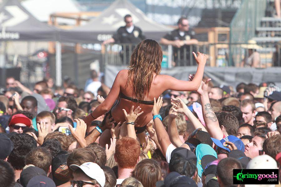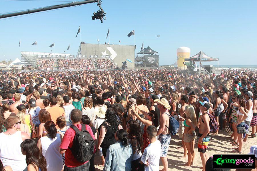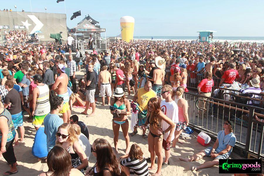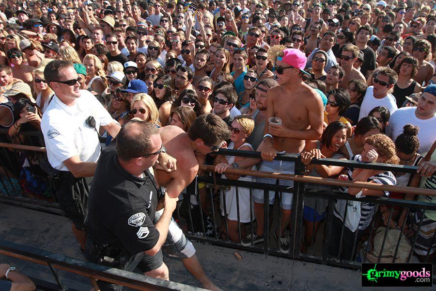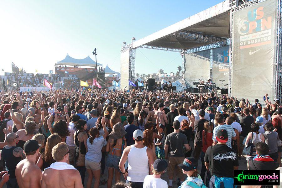 The U.S. Open of Surfing hosted a week’s worth of surfing, skateboarding and live music on the sands of Huntington Beach, CA this past week (July 28 – Aug. 7, 2011). The event was open to the public and the concerts were FREE! Take a look at our photo gallery below of The Sounds, Jimmy Eat World and Dead Country! Each band played to a massive crowd of scantily clad fans. From bikini babes to board short hunks, nothing stopped fans from crowd surfing and hopping barricades to get into the concert area (not even their barely there attire). Like with any packed FREE shows, the crowds got a little out of control as soon as Jimmy Eat World took the stage. A lot of kids got handcuffed by cops and escorted out of the area, for attempting to jump the barricades. The looks on these kids’ faces were priceless. Funny stuff. Check out all the action shots below!