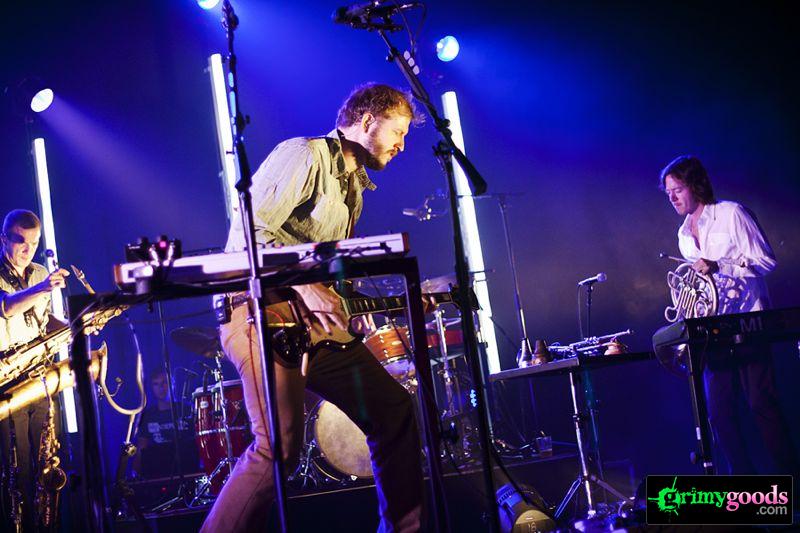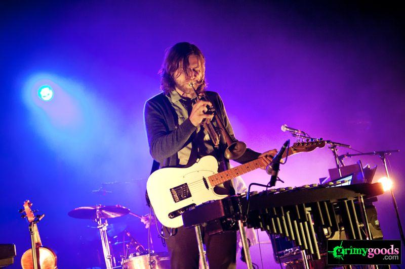Taking the stage with a large ensemble of strings, brass, winds and percussion, Bon Iver opened up with “Perth” off their new album. The song became large than life on the stage of the Gibson as Vernon’s subtle guitar strings played the prelude to a very emotive song. As soon as the fierce drum rolls came into play, goosebumps immediately took their toll across our arms, necks and backs. This song is absolutely beautiful, yet chilling—and the intense array of percussion only fuels the emotion.