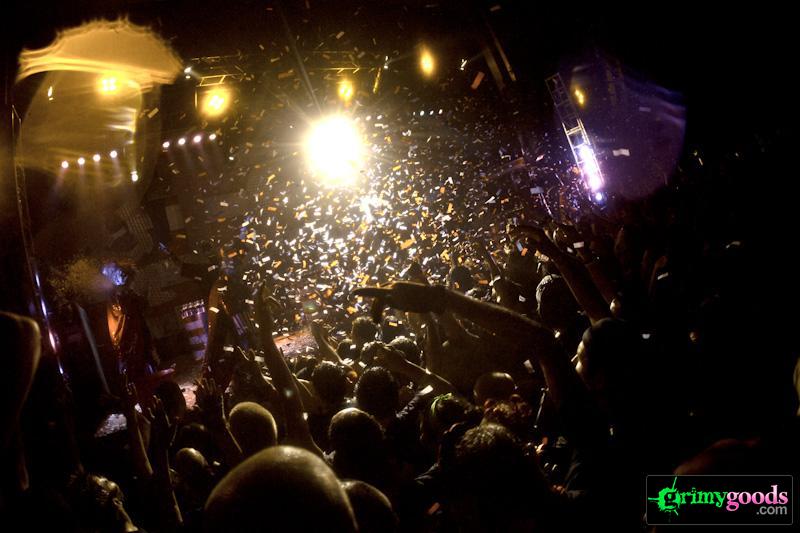 Let’s reverse the roles for a second. Imagine being the only Juggalo or a Juggalette in full gear at a Wu-Tang or Nas concert. Awkward! Plus, how often do you go to a hip hop event where Afro-Americans are the minority? I honestly didn’t think I would even see any but … SURPRISE! I saw about five and only one or two with the clown make-up which makes me wonder how loyal of fans the other three really were. So you know how rappers talk about poppin’ bottles of Mo’ or Cristal? Well the Insane Clown Posse pop liters and liters of soda called Faygo—seriously. From the overwhelming smell of it, I assumed that it was root beer, but I could be wrong. They had what seemed like hundreds of two-liter bottles that they would shake up and spray the crowd with and then just toss the whole bottle into the crowd for souvenirs. And when the Faygo began to run low, clowns would come out and restock the tables with more two-liter bottles. They must go through 15 gallons of that stuff in one night and the fans go ape-shit over it! Personally, I would have been pissed to drive home all sticky and nasty from all that Faygo. I am so glad I wasn’t close enough to get sprayed. I saw one girl who looked like she was about to see Gallagher smash some watermelons. She had the full-on see-through plastic rain coat and everything. She must have been to plenty of ICP concerts to be that well prepared. As for me, that was definitely the last ICP show I will ever be attending. It was actually fun and amusing, but it just wasn’t my cup of hip hop tea.