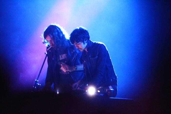 The dynamic French duo took to the stage and the roar of the crowd’s hooting and hollering definitely propelled them into a strong set. From the raw hyper active moments to the slow forward of fist pumping (and I ain’t talking Jersey shore style), Justice rocked everybody’s face off. They delved into a 90’s blast from the past playing “Block Rockin’ Beats” by the Chemical Brothers which soon transitioned into Justice’s own popular tracks “Phantom Pt. II” and “D.A.N.C.E.” to name a few. The crazy beat drop of the Junior Senior classic “Move Your Feet” shortly after kept the crowd moving strong, all that dancing could’ve easily been one’s workout for the week.