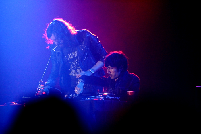 With cigarettes dangling from their mouths and casual back-and-forth movements on the decks, Justice almost made the crowd believe that the dancing was coming to an end when the lyrics “the party’s over Los Angeles” began to boom repeatedly from the speakers. Luckily, it was only a ruse just as hesitation struck the crowd and the dancing slowed down slightly, they built it back up with strong bass-ified momentum culminating the set with the simple unifying message of “We are your friends, and you will never be alone again” from the Justice vs. Simian re-mix. That track brought the dancing crowd together in perfect sweat swaying unison. And while there wan’t any giant glowing crosses on stage as is usually typical for the duo, ultimately there was no need for any visual distractions because one really couldn’t ask for much more of a bumpin’ DJ set.