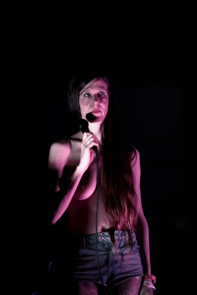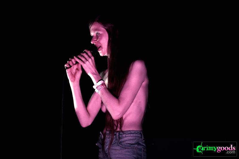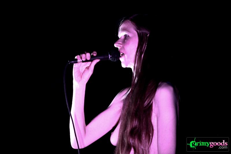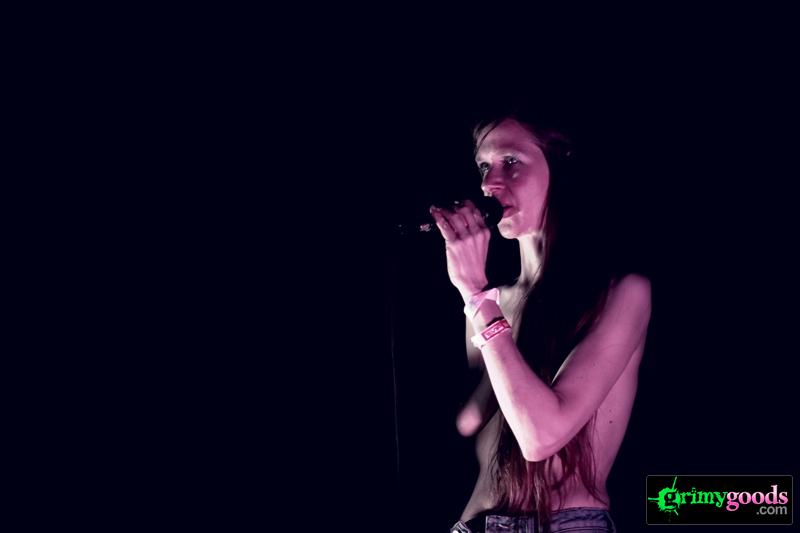 Opening up for Savages was a performer I had never heard. Walking into the Echo, I was greeted by a lanky, pale woman on stage, practically ranting, rather than singing. And to top it all off, she was topless. Just like her moniker, she was wearing No Bra. With bare breasts dangling before her, I had to give the performer some credit for having the balls (or should I rephrase to “having the tits”) to perform on stage practically naked. Her voice was not appealing; at times, I could not understand her “spoken-word” beneath a cloud of monotone vocals, and the creepy electronic beats accompanying her performance did nothing for me. Some may call this performance art, however, I was not feeling it. “Do her, fuck her, she takes it up the ass, I can tell by the smile on here face …” C’mon, dude.