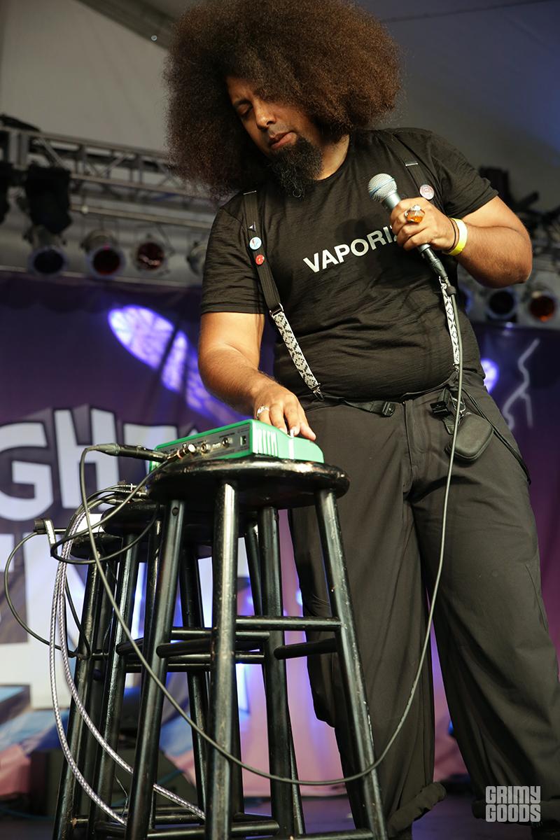 My absolute favorite part of the night was the awesomely weird and rare opportunity to see The Mighty Boosh. The British cult favorites, Howard and Vince (aka Noel Fielding and Julian Barratt), backed by a full, costumed band, brought the laughs and things got downright nuts — Howard simultaneously scattered and played guitar, special guests Bob Fossil (Rich Fulcher) got his interpretive dance on and Naboo the Engima (Michael Fielding) rocked the pan pipes like no other. Then Noel Fielding came back out as his other famed character ‘Old Gregg’ who brandished a concoction of Baileys and the back knee sweat of Bootsy Collins in order to get the funk goin with “Love Games” and the rest is history! Overall, an amazing day at Festival Supreme, looking forward to seeing how they top it next year!