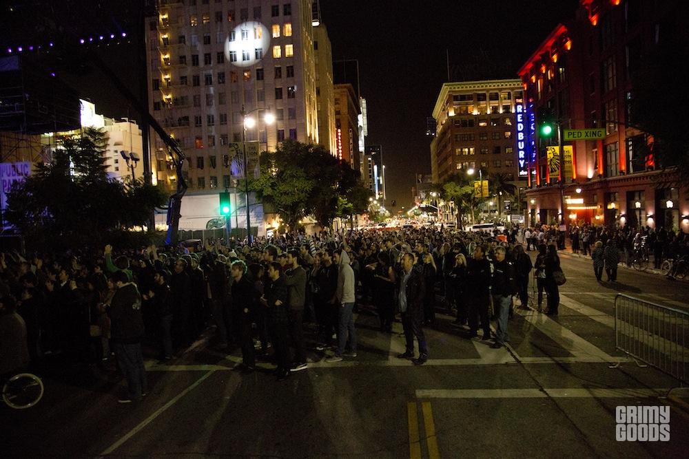 Fans were lined up on the blocked street of Hollywood & Vine to view all the action which was very easy to see from afar. We even had nearby friends in some of the neighboring buildings watching the performance from their apartment windows. Fans were so excited about this incredible music experience, that they were actually smiling, clapping, and dancing; now that is quite the Los Angeles indie-rock-crowd rarity if I’ve ever seen one.