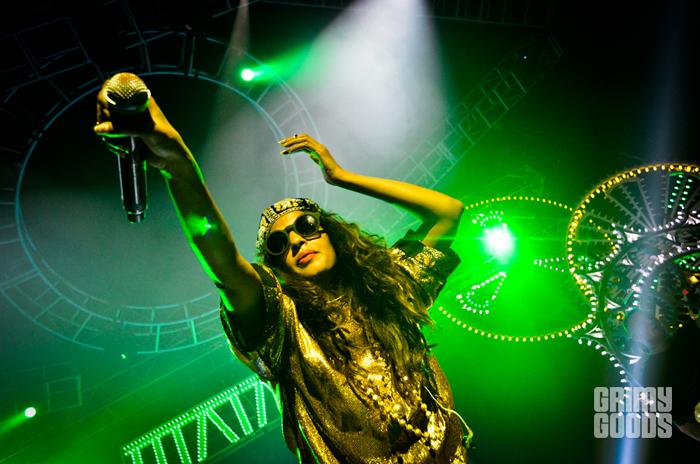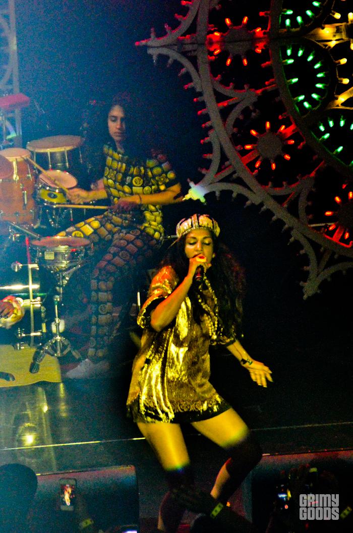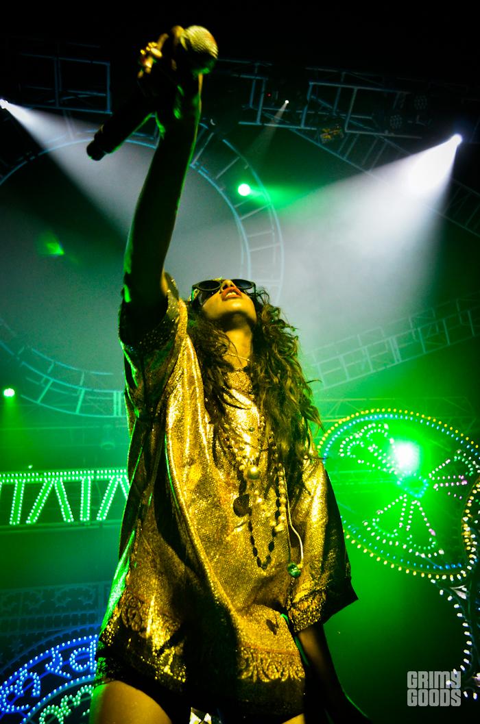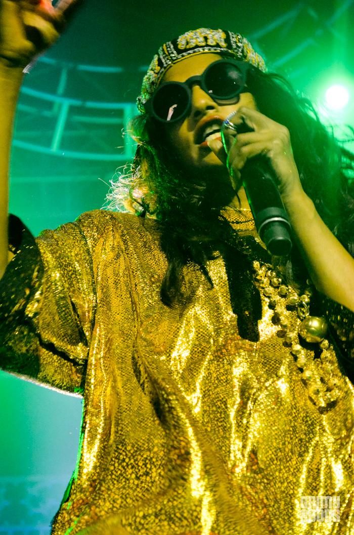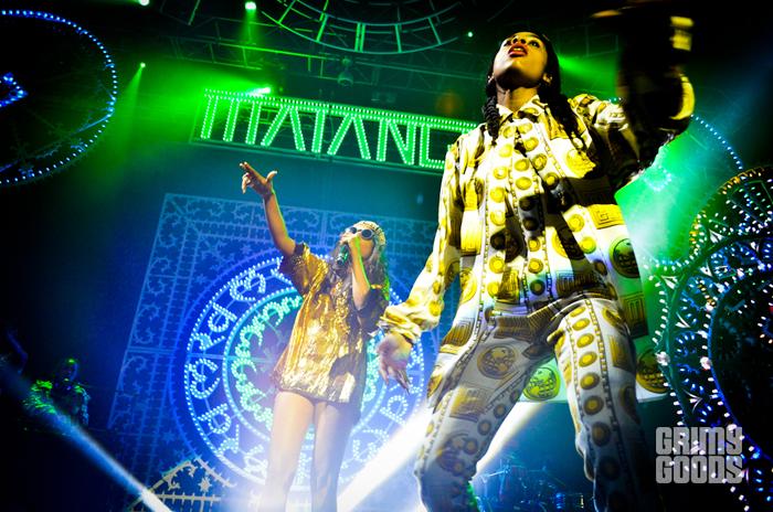 M.I.A. was joined by amazing dancers, a sick dj and a fantastic percussionist Kiran Gandhi, all wearing Versace making not only a great musical performance, but also a fashion statement. When on stage, M.I.A. had the crowd going wild with the songs we originally fell in love with such as “Paper Planes,” “Bucky Done Gun” and more. She brought a powerful performance sharing the material from her new album Matangi which we highly recommend checking out. The night got intense with a disturbance in the middle of the show that she broke up with class by inviting the daring audience to dance with her on stage. This singer/rapper/producer/activist got everyone’s heavy-ass-shaking-twerking spirits out and dancing to the beat of dancehall, hip hop, rap, and world beats which have heavily influenced the global bass scene of today. We are gonna call it for now “future music”, you can stream it here and live it in the many years to come.