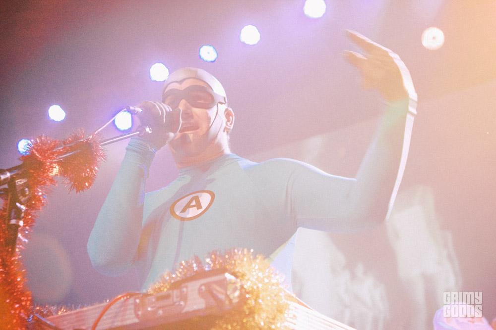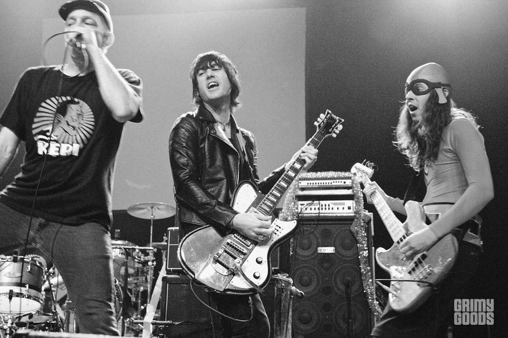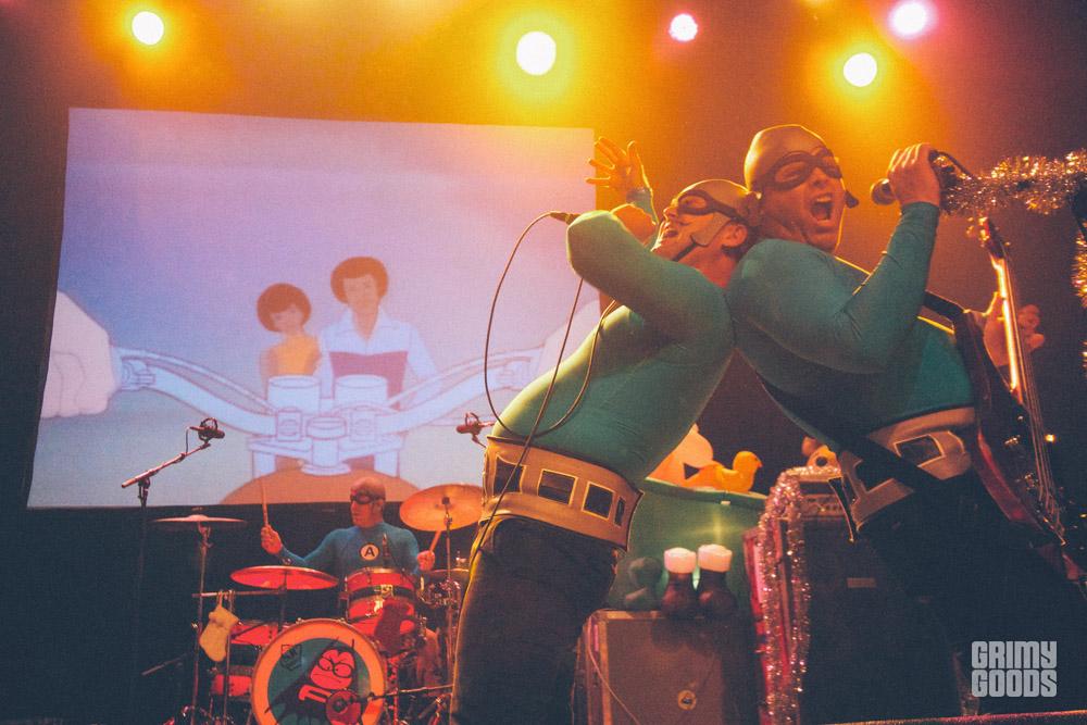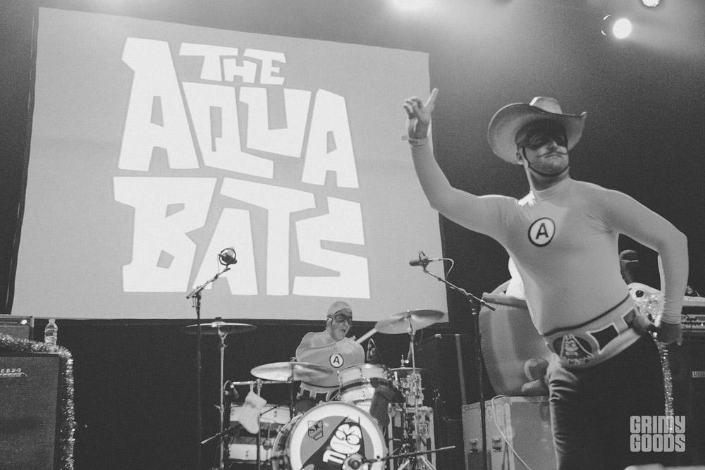 This past Saturday, everyone’s favorite crime-fighting superhero band, the Aquabats, took over the El Rey for an all ages holiday show. The Aquabat Cadet Faction was in full effect as the band played songs from Charge!! , their first full length album in six years. Starting off the show was bay area punk band, Emily’s Army. Consisting of Joey Armstrong, brothers, Max and Cole Becker, and Travis Neumann — the band had the crowd singing along to their brand of punk a la Stiff Little Fingers and the Clash. Next up was former Groovie Ghoulie frontman, Kepi and his solo project simply named Kepi Ghoulie. Due to hazardous driving conditions on the Grapevine, Kepi’s bass player couldn’t make the show, so they recruited the help of Aquabats guitarist, Eagle “Bones” Falconhawk. Kepi embraced the holiday spirit and tossed wrapped presents into the crowd. It was a fun holiday rock show for everyone!