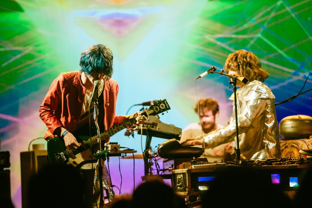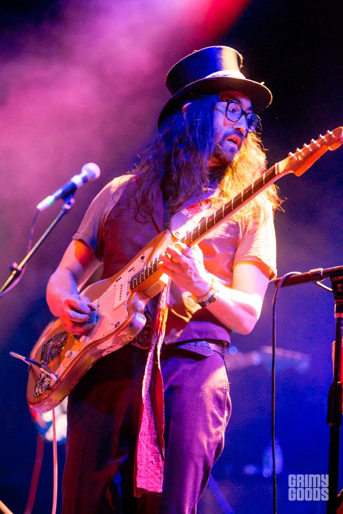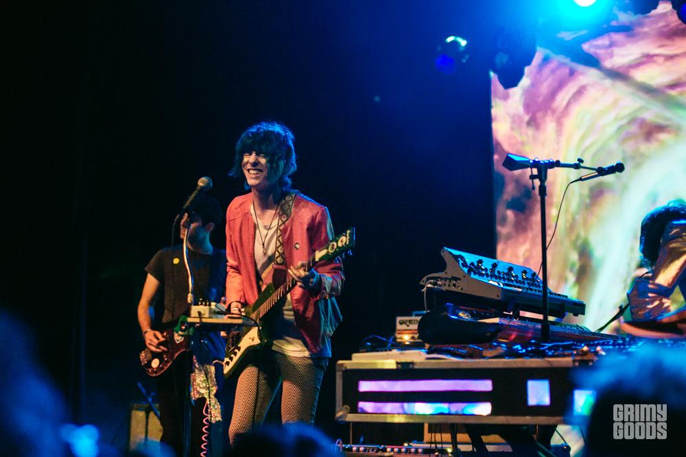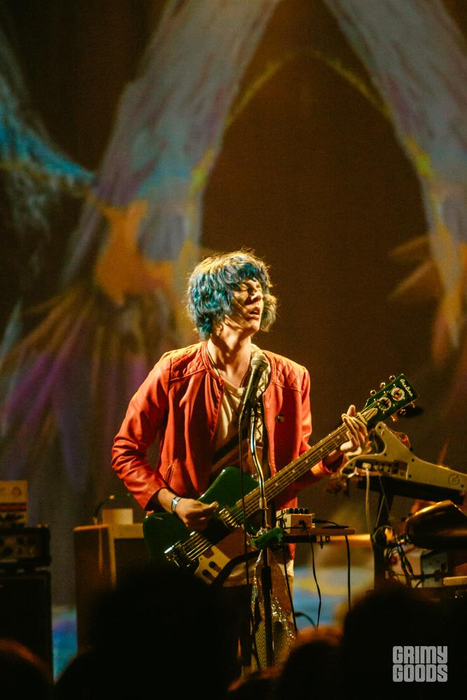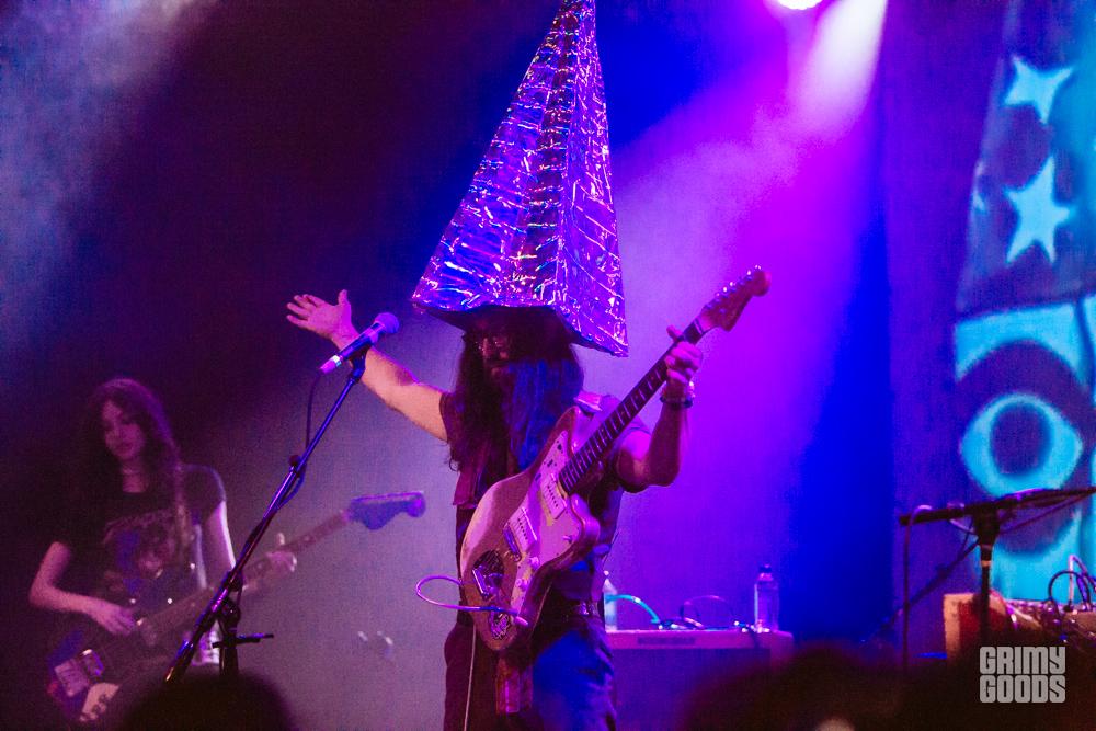 Opening up for The GOASTT were local Los Angeles favorite, Fever the Ghost. The band performed last month at Desert Daze, and little did I know that these guys would kick ass at doing what they do. The keyboardist was on fire as he carried the band throughout every song with his passionate gestures. Their stage presence was also pretty amazing, with the keyboardist wearing an aluminum material jacket that vividly captured the surrounding lights, and the vocalist’s shaggy blue hair combined with a red leather jacket that gave much eye candy. Not to mention, the band’s projections of a flying UFO to splashing milk, that gracefully went hand-in-hand with their distorted, psychedelic, strange music.