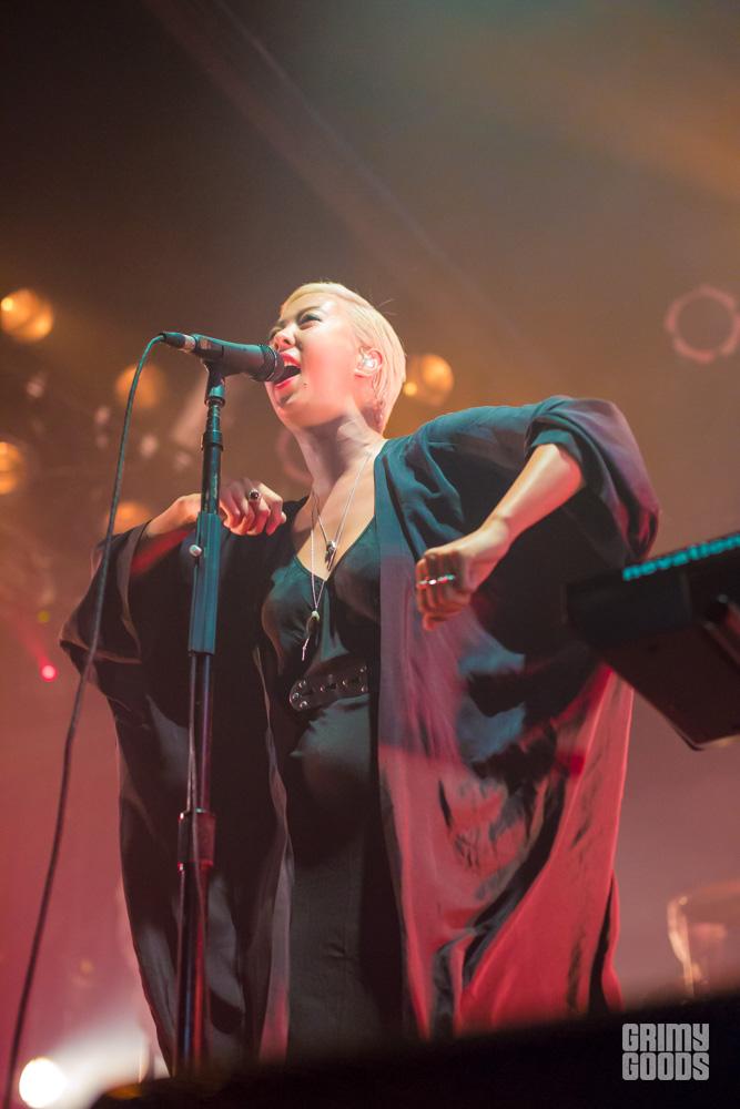 Their set started around 11 p.m. and they didn’t waste any time jumping right into it. “A Stillness”, off their most recent release In Rolling Waves, was a nice slow build to what was yet to come. After “Hearts Like Ours”, things truly kicked off with “Girls Like You”, a dance-y tune that features great vocals between Thom Powers and Alisa Xayalith, who by no coincidence happen to be dating. Their chemistry is felt on each song.