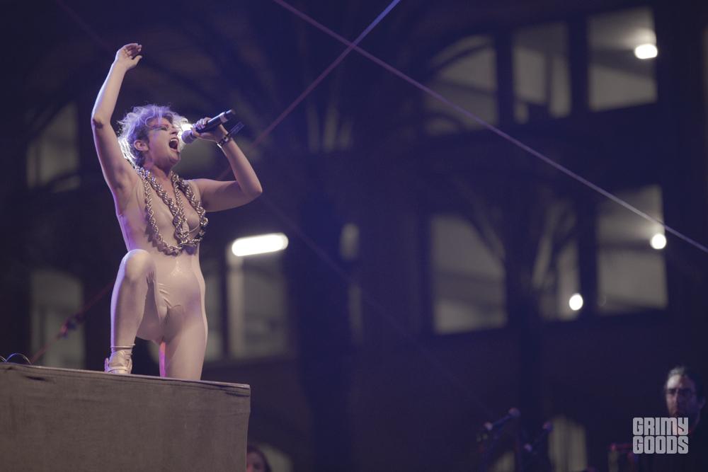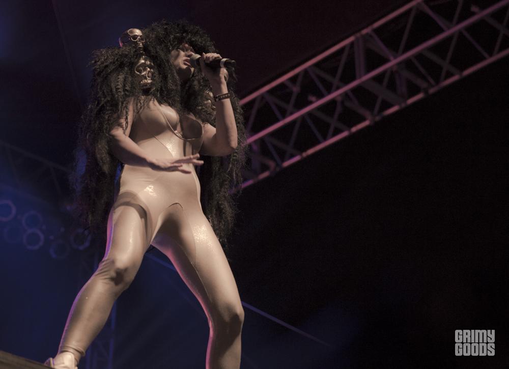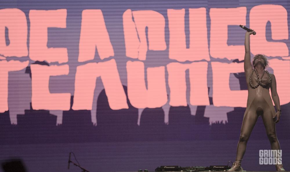 The no-fucks-given fireball that we all know as Peaches hit the stage clad in a nude body suit and a wild headgear that appeared to have skulls protruding from her messy faux mane. She worked the stage like a banshee in heat placing the mic on her crotch and climbing all over the railing of the stage. As always, Peaches was raucous, raunchy and unforgettable.