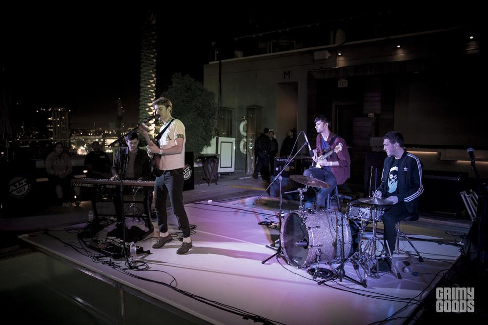 Newbury Park’s The Neighbourhood‘s performance was anything but laid back as they rocked the indoor portion of the rooftop with their seven-song set. “Sweater Weather” seemed a perfect fit considering it being one of the few nights in L.A. that a sweater makes sense as more than just a fashion choice. I’m pretty sure the ground shook from the collective swooning from the gals in the crowd over singer Jesse Rutherford’s sleeveless tee that showcased his various tattoos. The band had great charisma and you could tell they were enjoying themselves — I caught a glimpse of bassist Mikey Margott and drummer Brandon Fried exchanging smiles and a “WTF how did we get here?” moment.