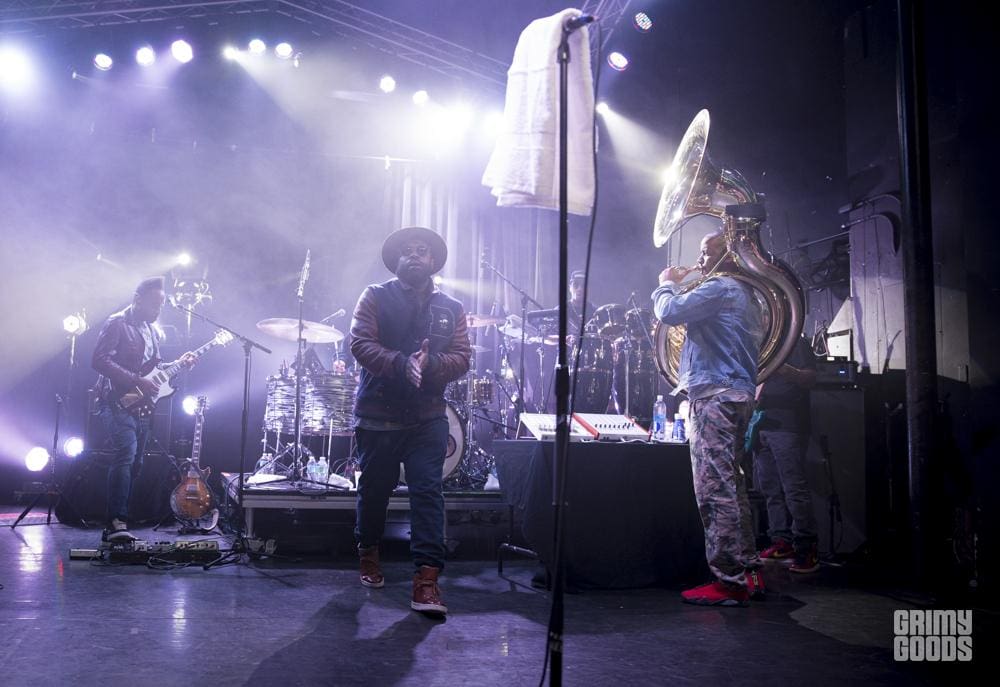 Then things really got going as the crowd cheered when Damon “Tuba Gooding Jr.” came onto the stage and began to chant “tuba, tuba, tuba” as he suited up with his brass instrument. The crowd went from cheering to roaring as soon as Questlove took to his rightful spot on his drum throne, followed by Black Thought coming up from behind the stage and taking lyrical command of the show.