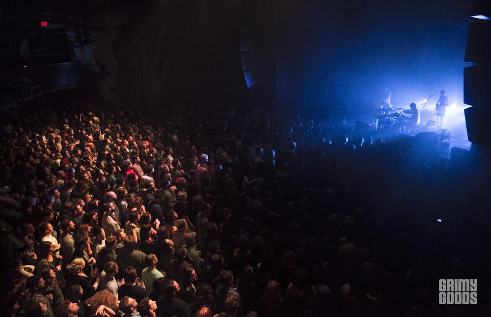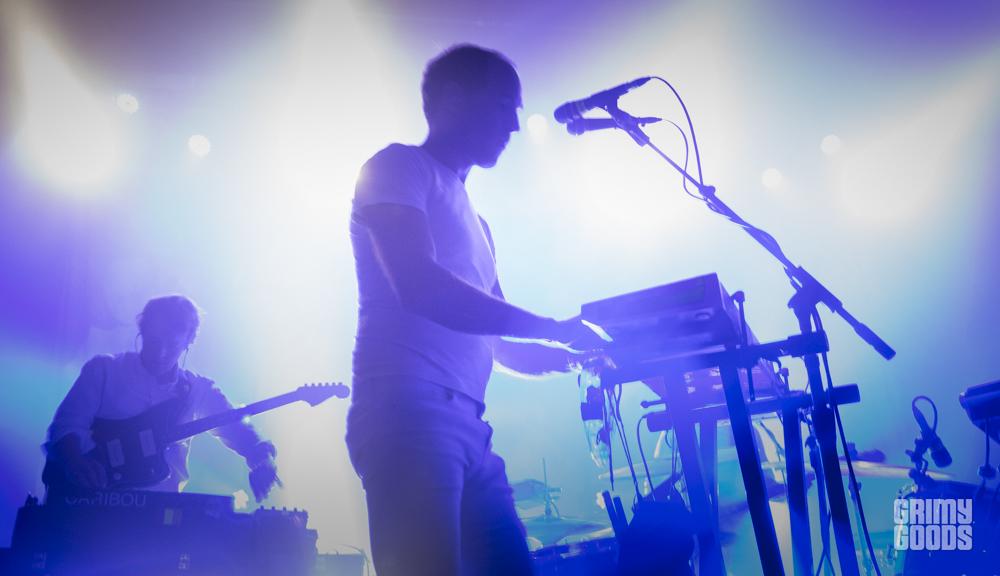 Caribou came out all dressed in white with two drum sets facing one another. They were pretty much perfectly silhouetted most of the night like the band members themselves didn’t matter and that it was all about the music. The back lighting gave off a spectacular show of red blues, yellows along with some intense strobe lighting, setting the tone for an almost spiritual experience. The music was hard hitting and the bass was deep. Not only were the doors of the emergency exits rattling but i could feel my bones and heart shaking in my body, it makes you realize just how powerful sound/music really is in the figurative and the literal sense. It makes you feel so small as though you were standing in an abyss all alone, and when I say all alone I mean with 1,200 people whose bodies are also feeling the boom.