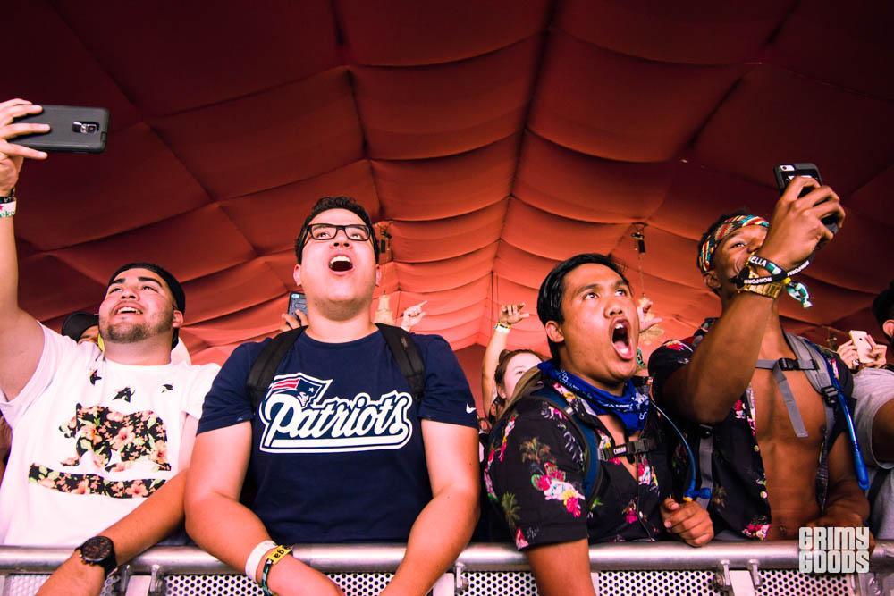 Nick Sanborn was a magician on his gear as he mixed vocalist Amelia Meath’s vocals live as she sang them. The two were able to get people dancing to their song “H.S.K.T.,” everyone singing back “My head, my shoulders, knees and toes” as large dance circles began to form.