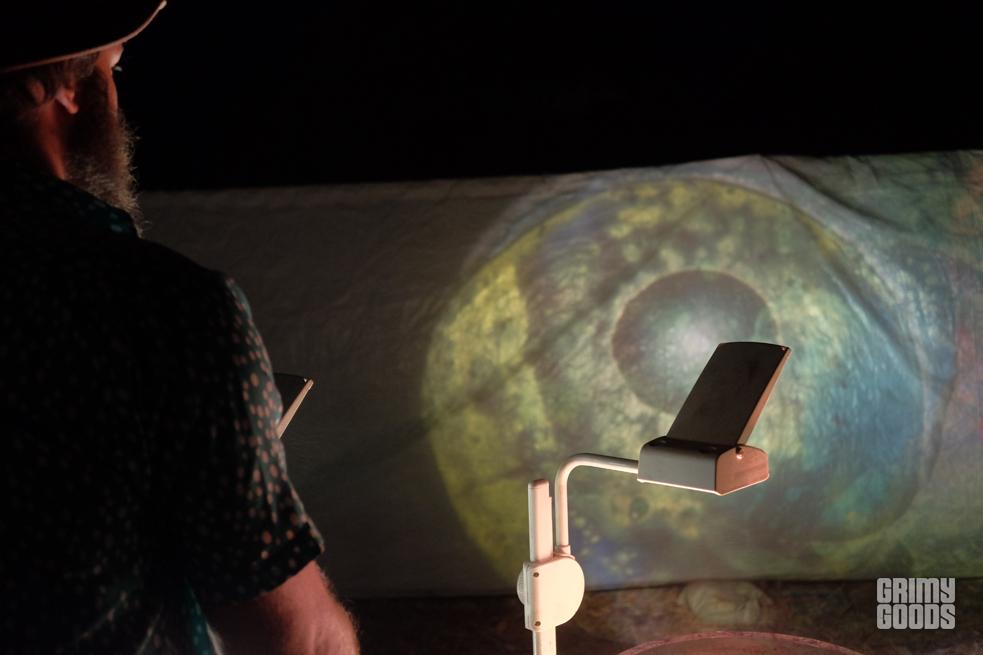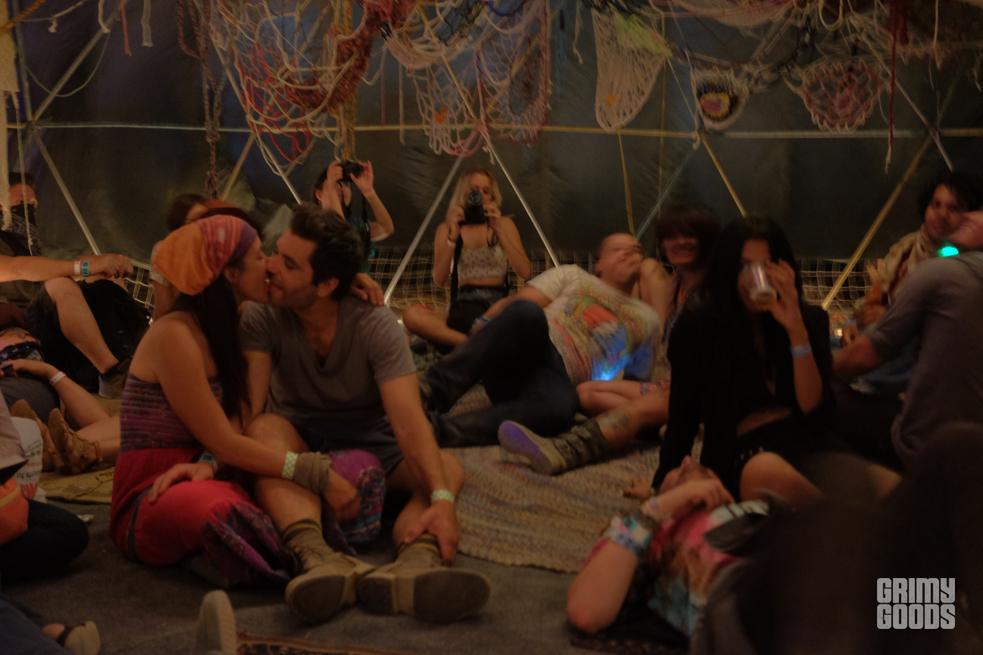 About a five-minute walk down the dusty path were JJUUJJUU on the Party Stage. With a breathtaking psychedelic backdrop (created by Mad Alchemy) that protruded in the high desert wind, JJUUJJUU took us to another world. It was an unreal psychedelic jam that couldn’t have been better suited in any other environment (watch here).