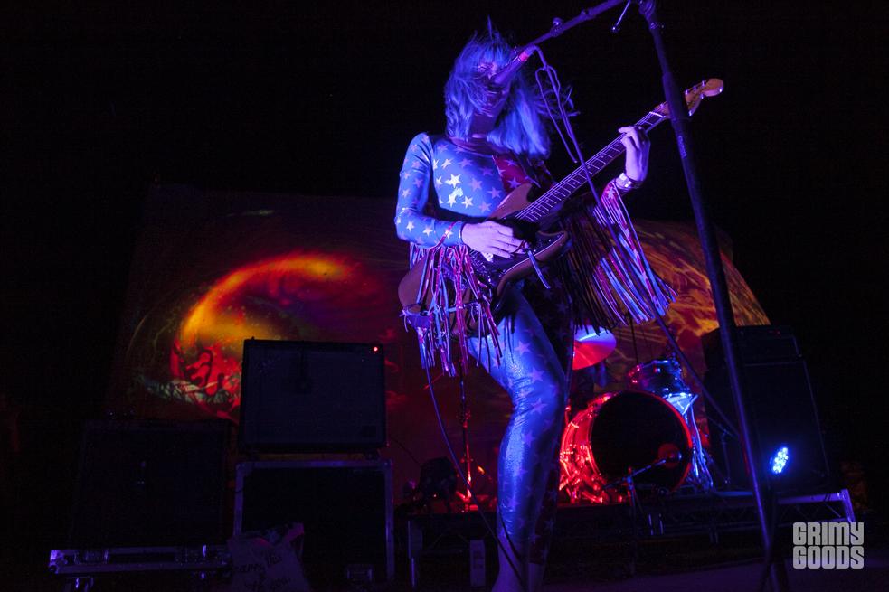On the same stage, Deap Vally and Fever The Ghost put on some mind-blowing performances. Lindsey Troy of Deap Vally looked amazing in her Evel Knievel-eque jumpsuit, while drummer Julie Edwards pummeled away in front of a psychedelic projection that appeared as another dimension. At one point I though she was going to be swallowed into a black hole. It was a dazzling visual.