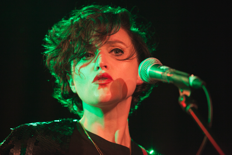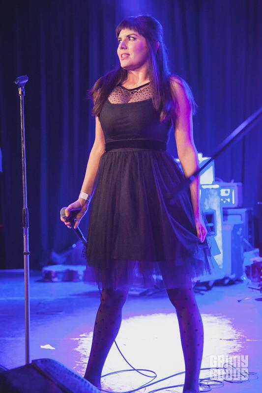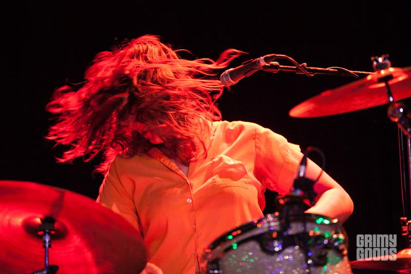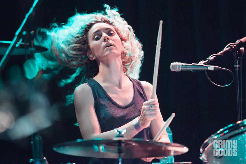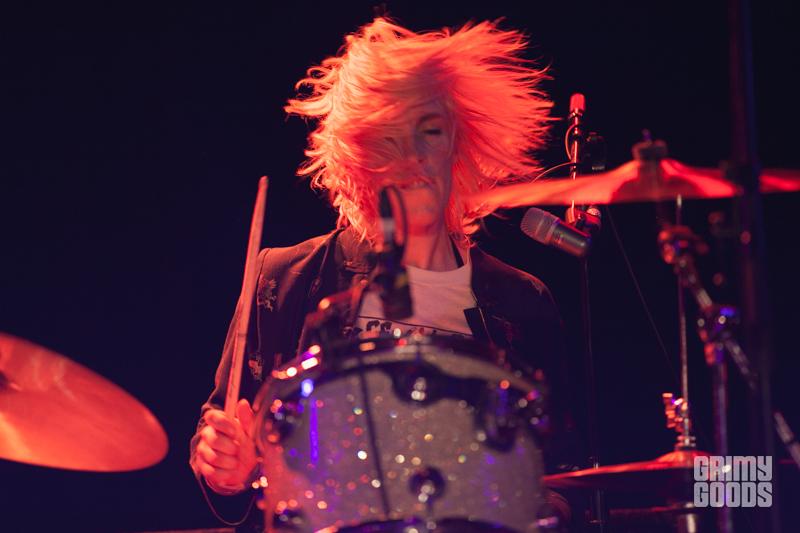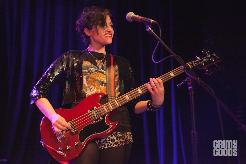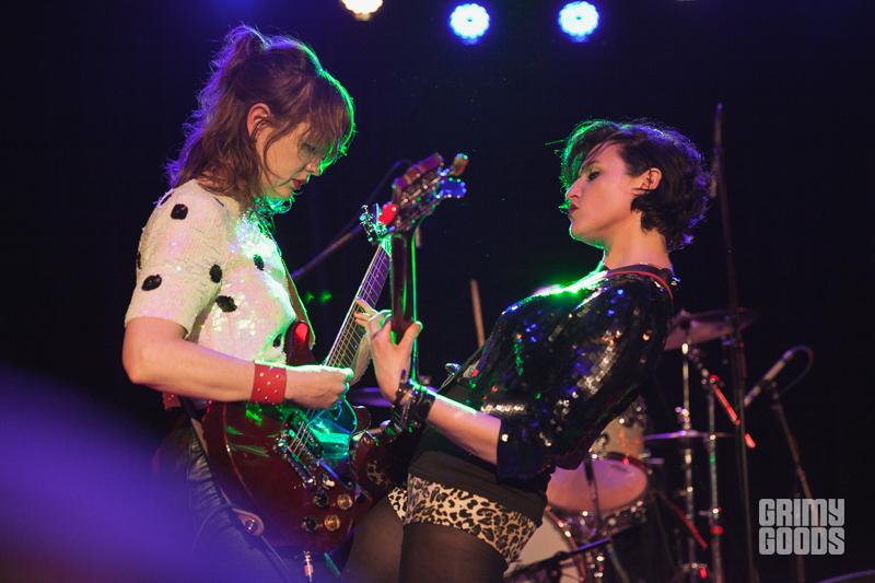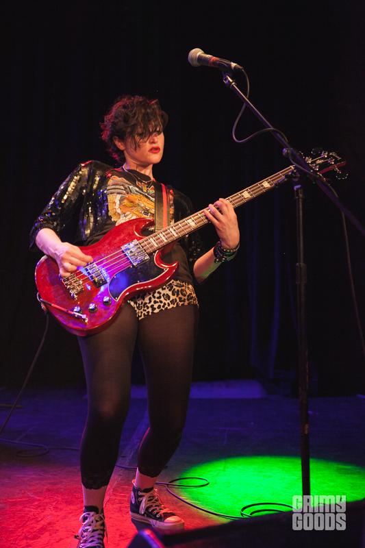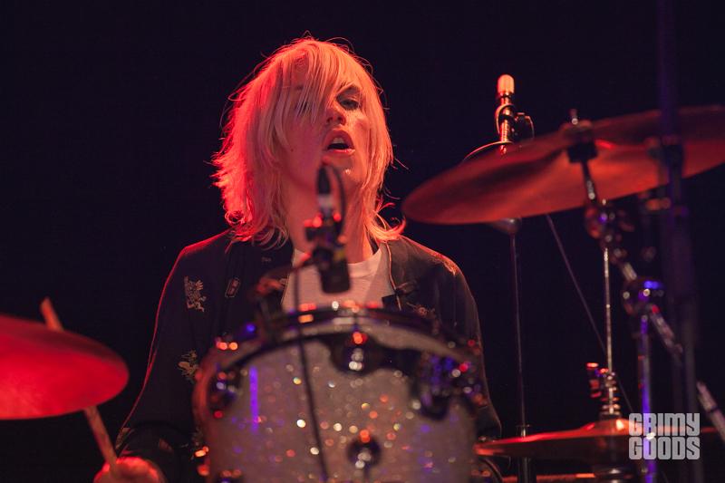 Deciding that they had enough of the greenroom and all of its glory, Ex Hex made their way to the stage around 10:45PM. As the notorious Roxy Theater curtain rolled up into the rafters an absurd amount of applause rang throughout the audience. For a band that formed in 2013 with one full length under their belt, that ain’t too shabby of a welcoming. Based in Washington, D.C. these garage-pop hitting females know how to put on a show. Fronted by Mary Timony on the guitar, the band conjures up sounds that would be attached to such acts as early Yeah Yeah Yeahs, Tom Petty and the Runaways, and a super dirty Joan Jett. As the trio played such hits as “Waste Your Time” and “Don’t Wanna Loose” of their debut album Rips, you could see the passion on each of the girls’ faces. It was like they were playing a hometown show in the comforts of a garage or teen center.