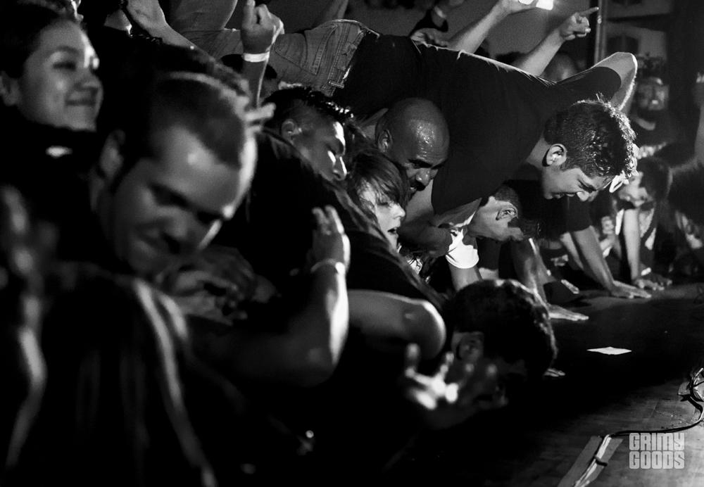 Needless to say, the action really started when the headlining act came on: Los Crudos. Not only was the pit going off with bodies surfing the crowd, but fans rushed the stage and superman-ed over the crowd creating a constant motion of stage dives. It was a truly remarkable site. It was total anarchy, but at the same time, as weird as it may sound, it was respectful. Not one fight broke out. And the awesome thing was, I don’t even think there was security present. Everyone seemed to managed themselves fine, lifting their brothers up if they fell. If only this could be the metaphor for how life and society should be.