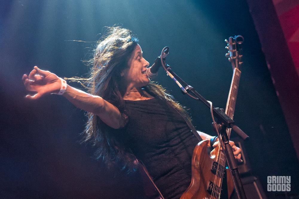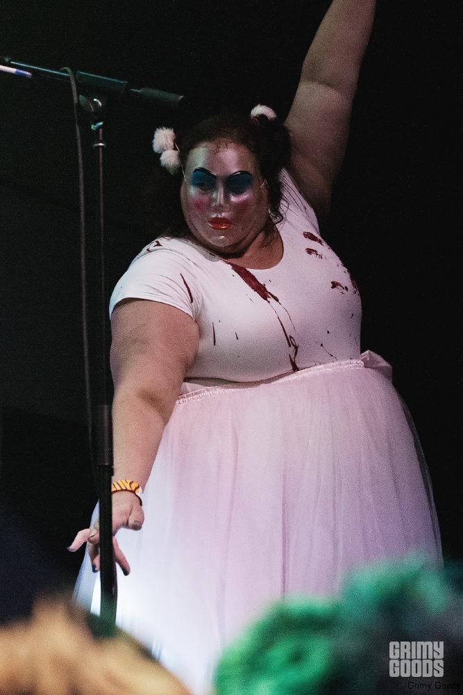 Shortly thereafter things got even louder as the audience roared with applause when grunge/metal rock veterans Babes in Toyland came on. As drummer Lori Barbero and guitarist/vocalist Kat Bjelland stated in unison, “If you ain’t in the pit, you ain’t shit,” and from there the crowd lost it. A flying shoe, head-banging old dudes, cameras up and fists in the air for the rest of the set which included various heavy hits from across their highly influential three-album discography. I was especially struck by the best scream of the night from Lori Barbero at the end of, “Drivin,” off their ’95 album Nemesisters. Even Nadia G. was spotted in the crowd rockin’ out in full force during their set. This was a sign to me that Nadia G. accomplished what she set out to do with Riot Grill – celebrating badass bitches.