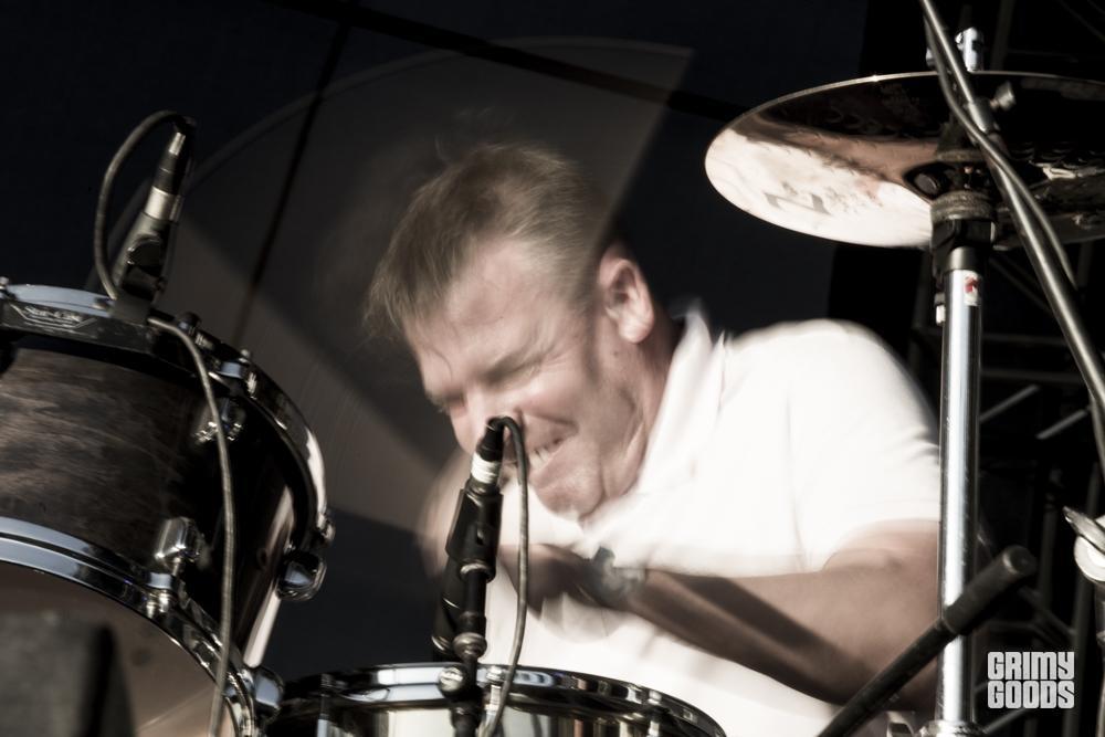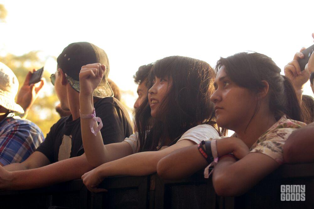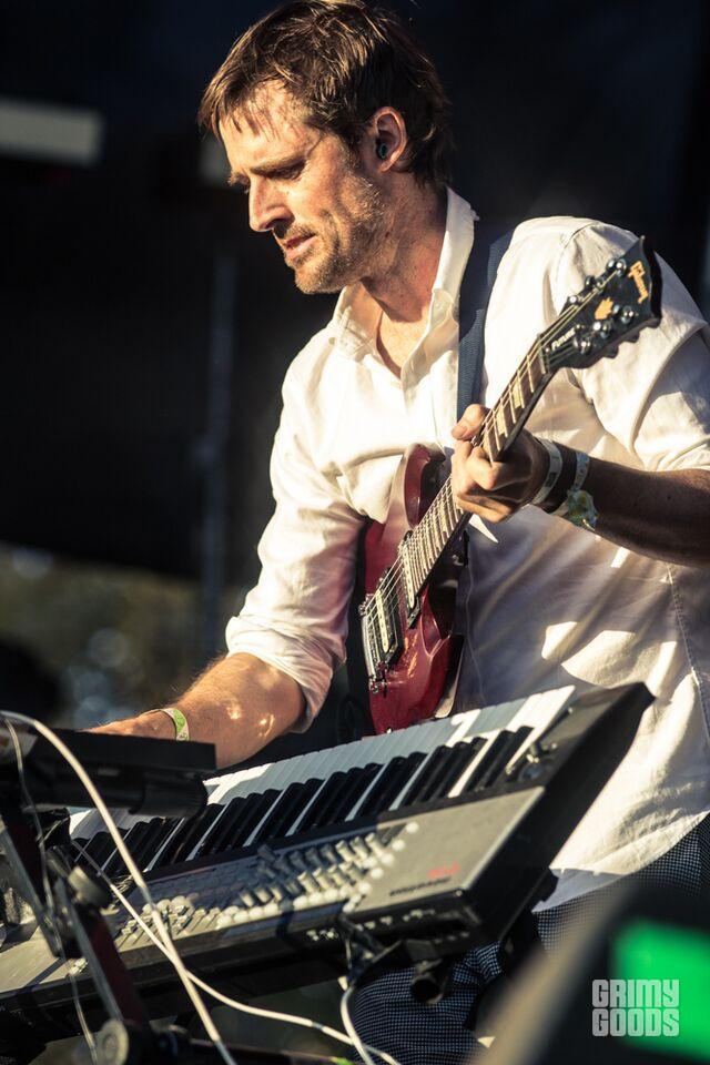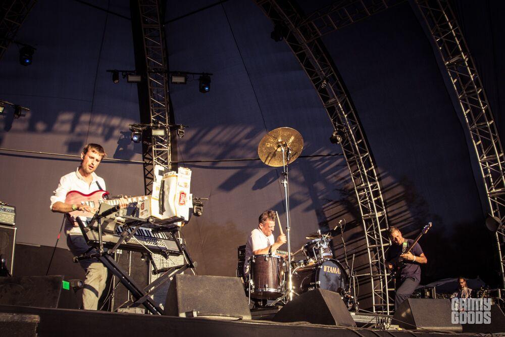 Battles played the rock-pop jam “Ice Cream” near the top of the set and it was tight. It had all the musicians in the audience playing along with their air guitars and drums. I stood in the shadows of the trees enjoying the shade and the raw musicianship and energy that is Battles.