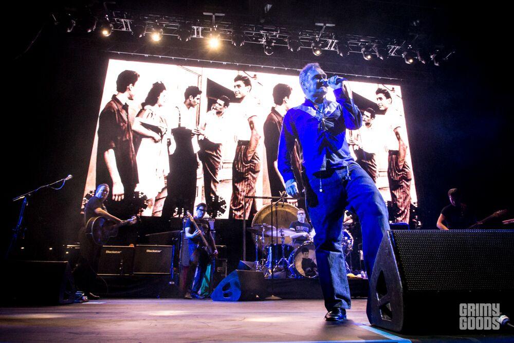 When I reached the stage to see Battles at FYF Fest they were nonchalantly setting the up their gear, chewing gum and setting out beers. The drum kit was center stage and toward the front with one tall cymbal raised high in the air. Looking around it was clear that the crowd was filled with musicians; you could hear them all talking shop with one another. Then what seemed out of nowhere we heard a riff start, then it looped which got everyone focused on the stage as the guys one-by-one took to their instruments. I knew this was going to be a jam session and it really was.