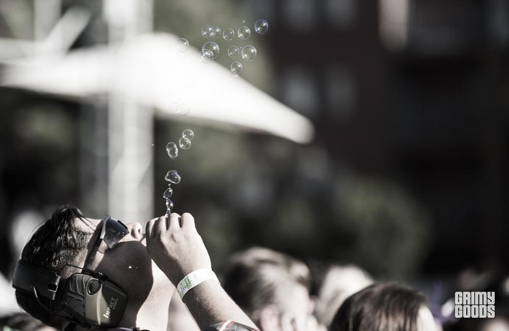 When I reached the stage to see Battles at FYF Fest they were nonchalantly setting the up their gear, chewing gum and setting out beers. The drum kit was center stage and toward the front with one tall cymbal raised high in the air. Looking around it was clear that the crowd was filled with musicians; you could hear them all talking shop with one another. Then what seemed out of nowhere we heard a riff start, then it looped which got everyone focused on the stage as the guys one-by-one took to their instruments. I knew this was going to be a jam session and it really was.
