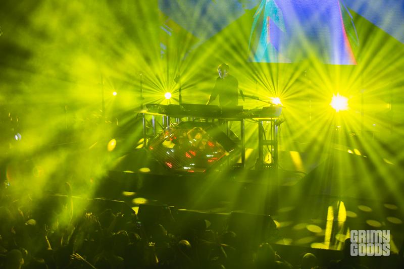 At last the time had arrived for the headliner to start showing face. Harley Edward Streten, or better known as his stage name Flume took the stage at the Mayan circa 11:15PM to what would be remembered as a performance for the books. It’s pretty safe to say that Flume has transitioned himself from an oddity act to a full-fledged household name. With the help of multiple headlining slots at festivals such as Lightning in a Bottle and the Governor’s Ball the Australian DJ has proved that he has the goods to make himself stand apart from a mobbed scene. Hitting the Mayan’s crowd with such monster tracks as “Holdin On” and “Drop the Game” Flume reminded us that the world of electronic music is here to stay. Aside from him solo tracks Flume also pressed play on joint-venture songs such as “Left Alone” which features Chet Faker and “Some Minds” that features Andrew Wyatt. Periodically Flume would take the microphone and ask the audience if everything was ok, as if he was self-conscious about the larger-than-life tracks he was blasting, causing the audience to loose themselves in pure ecstasy. To top it all off, Flume was joined on stage by Miike Snow’s Andrew Wyatt.