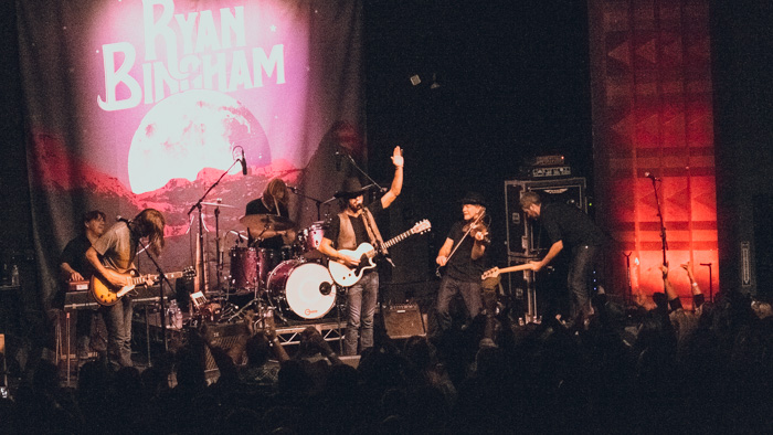By the time Ryan launched into “Depression,” everyone everywhere, upstairs and downstairs in the Regent was singing. Bingham’s backing band is made up of amazing musicians that bring greater musical depth to his songs. They re-worked “Blue Bird” a track off his Roadhouse Sun LP, into a soaring and rich crescendo. With screaming guitars and driving drums the crowd was in step with band. Throughout the set Bingham stood center stage, showing off his chic cowboy style. His tender eyes were earnest as he sang through a 17-song set of passionate songs that chronicle his life from rodeo rebel to loving Father. But, don’t be mistaken this cowboy is still a rebel. When security grabbed a guy and kicked him out from the venue Bingham said, “Homeboy got kicked out for smoking weed? Are you kidding me? You can’t smoke weed at a concert anymore? Come on now! Come hang out at the bus after and we’ll smoke some weed.” He included two covers — “Dogwood” by country outlaw Terry Allen and “Sweet Virginia” by the Rolling Stones, which he sang with openers Jamestown Revival and a few other friends. He ended the his set with a five-song encore that felt like it could have kept going for 45 minutes. The audience didn’t want it to end either. While screaming and raising beers in the air they showered Bingham with praise. The city of L.A. clearly loves their tender hearted cowboy.
