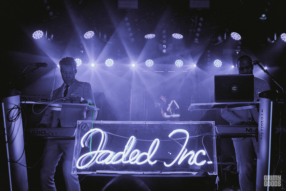 Starting the night was his 80s electro-pop project, Jaded Incorporated. Very much rooted in the new wave, 80s electro, and even a bit of post punk, Mayer and partner in crime, 14KT, took to their synths and bashed out a very accessible set, especially with their incredible cover of A Flock of Seagulls hit, “I Ran”.