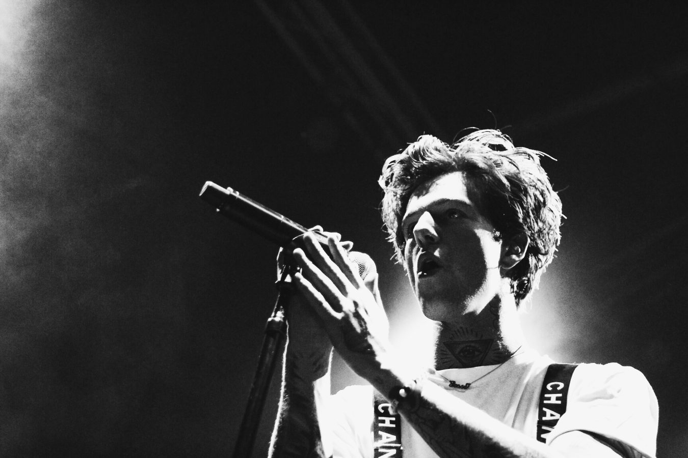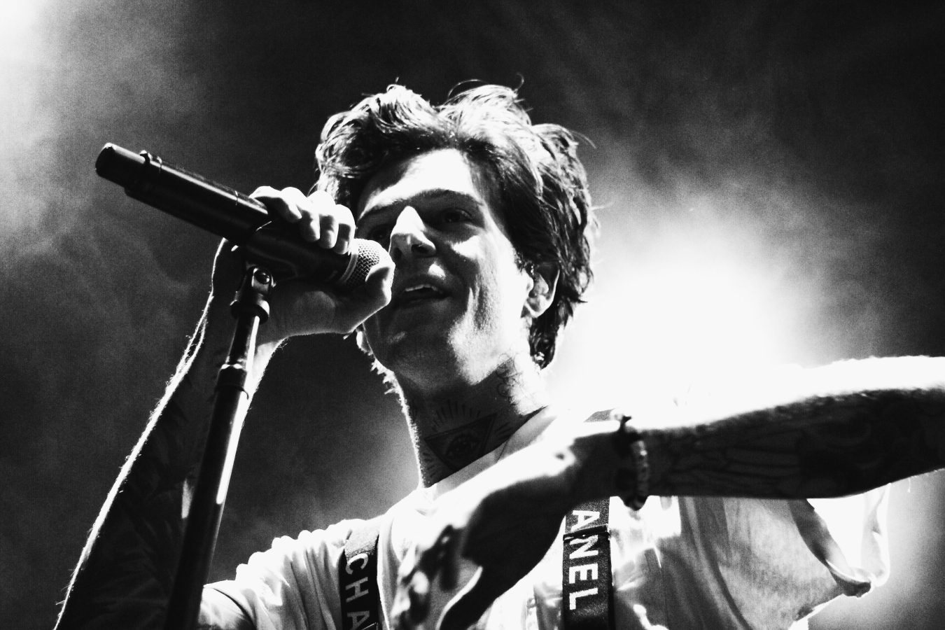 Flexing their eclectic musical prowess, The Neighbourhood opted to slow their now crazed tempo to the beat of, “Baby Came Home 2”; a deceivingly modest track that opens with acoustic strums and Rutherford’s soft murmurs, but descends into a hammering of electronic drops and synth powered static. Standing above the crowd as a puppeteer of emotion, throwing his arms up and down to the the rhythm of crashing percussion and explosive electronica, Rutherford pushed the crowd into a frenzy of flailing arms and screams. “Daddy Issues” followed not long after, its head-bobbing articulation of steamy bass lines and heart-thumping percussion hugging the devilishly alluring murmurs that rolled off Rutherford’s tongue.