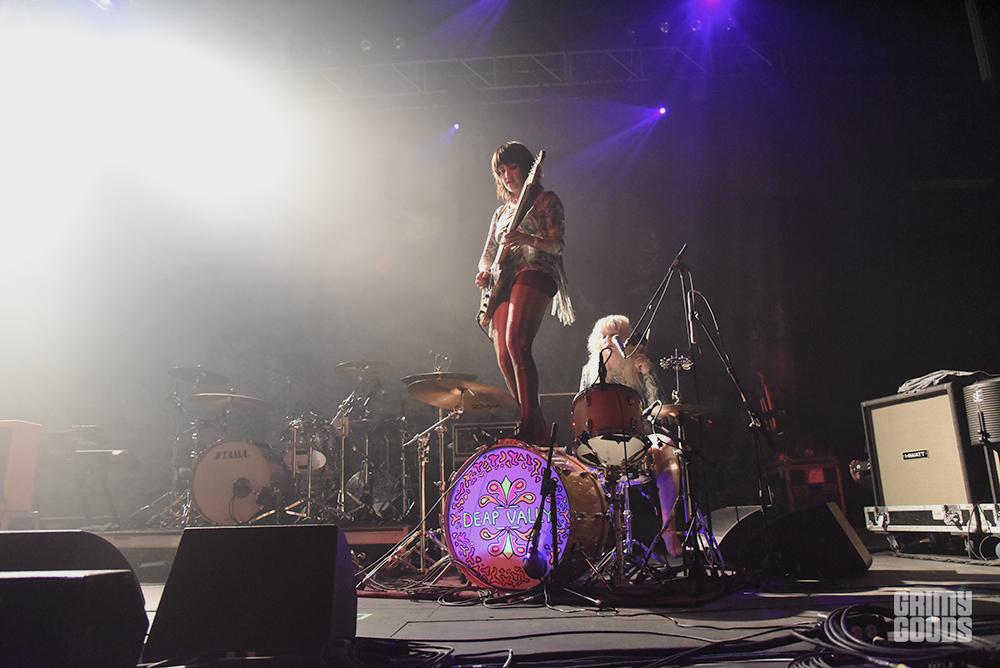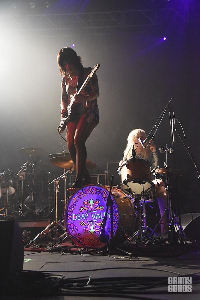 On drums and backing vocals, Julie Edwards is a force to be reckoned with. It’s no wonder she made Grimy Goods “Best Female Drummers — By All Means, BADASS” list. Recently brining life into this world with a new baby, Edwards is more badass then ever. This woman can drum. With her hair vibrating to the beat of her drum, Edwards never missed a beat. As I watched her in pure amazement, I wondered, when does she get to breathe. Hands down, Deap Vally go the party started.