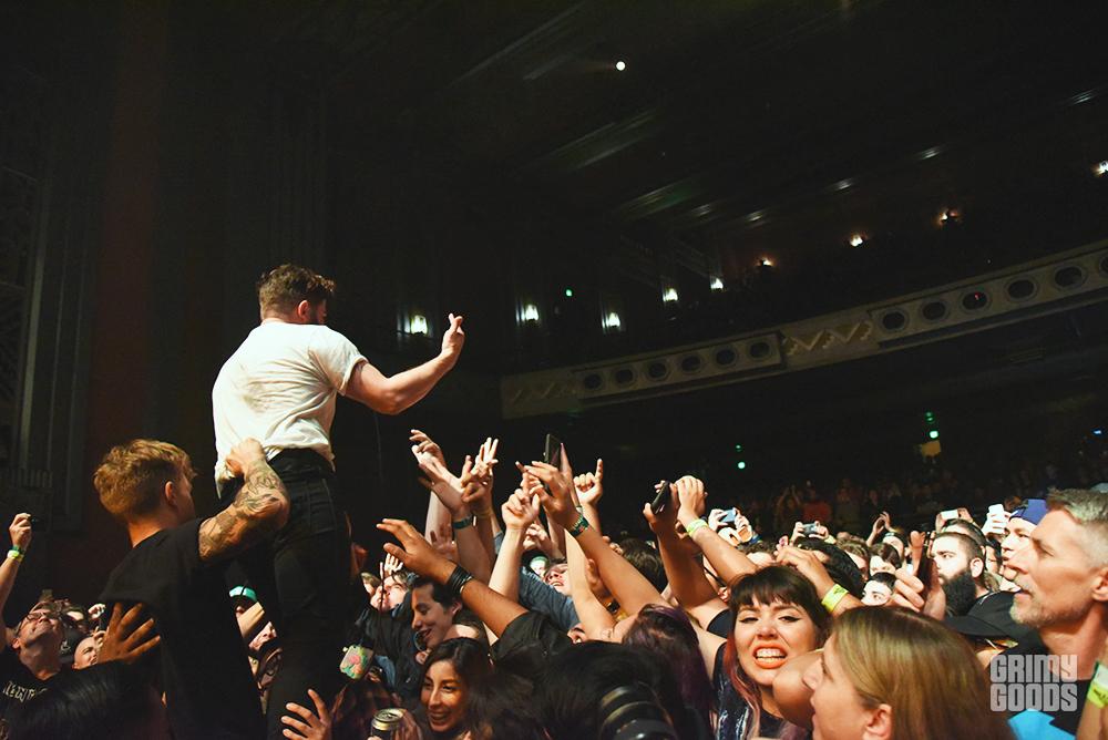 Next up on the bill were the highly awaited indie rock band from England, Foals. Grimy Goods has covered these guys numerous times, and I can see why. They are a non-stop and highly combustible performance. Let’s just put it this way, Foals were on fiyah! These guys are all about getting the crowd moving, and even getting in the crowd themselves. Pomona cheered from the start of their set to the end. I’m sure many fans lost their voices this evening from all the joyous screams. Playing favorites from their earlier albums, as well as their latest What Went Down — Foals — as always, left the crowd craving more of that robust Foals flavor. I must add, frontman and guitarist Yannis Philippakis has all the strong and vivid presence of a lead. There’s absolutely a blunt force throughout this most charismatic man and his band mates.