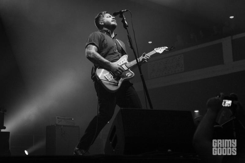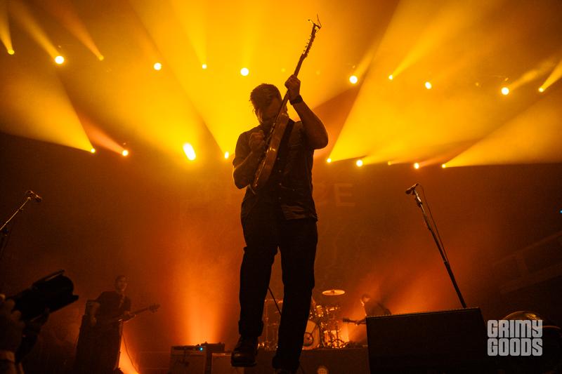 Directly following Gates, was post-hardcore group of maniacs from Grand Rapids, Michigan known as La Dispute. If you’ve never seen these incredibly intense, unquestionably energetic humans your life is lacking. Lit by only several small fresnel lights (lights used on film and television sets) the band encompassed the stage with their uncanny delivery of music and posture. Performing such monster hits as “Nobody, Not Even the Rain,” “Andria,” and “Such Small Hands” the band was able to heat up the night in preparation for the headliner, Thrice. At one point during their set lead vocalist Jordan Dreyer jumped down to where the barricades met the fans and preceded to scream profusely into his microphone, simultaneously blocking a photographer’s camera with his hand.