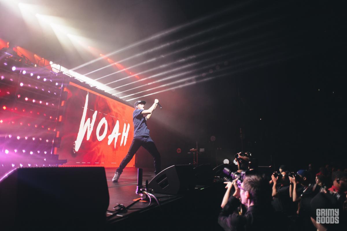 With YG coming on stage next, the crew had to prepare bringing out five huge red letters spelling out “BRAZY.” YG, growing up in Compton, fell into the gang lifestyle now repping his blood set any and every time he can. YG started off his set with the very popular “BPT” from his first album My Krazy Life. Having just released his second album Still Brazy it was no surprise that he stuck to performing songs of that album. Wanting to rep his set as often as possible, again, we weren’t surprised that he stopped in the middle of his performance to show off his “blood dance” with his DJ repeating “do your dance YG, do your dance.” YG busted out his dance moves.