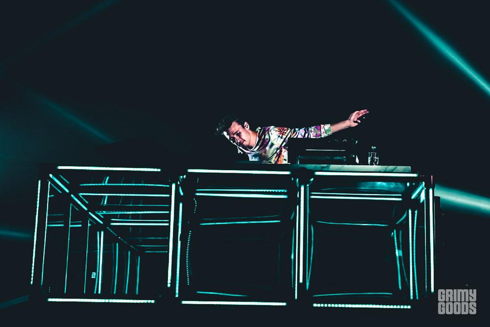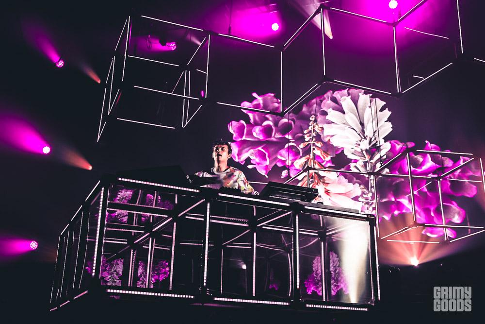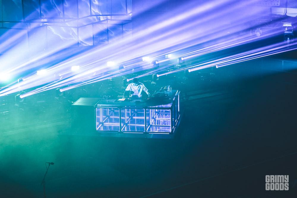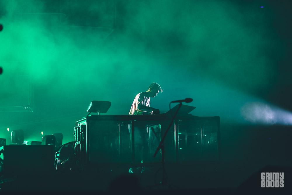 As Staples’ set came to a close, the crowd started to intensely move closer to the front of the stage for Flume. The lights eventually dimmed, and Flume’s dramatic ambient music played for about 10 minutes. As the anticipation grew thick, the curtains slowly rose and revealed Flume’s elaborate stage setup. He immediately had the crowd drawn to his sounds and stimulating visuals.